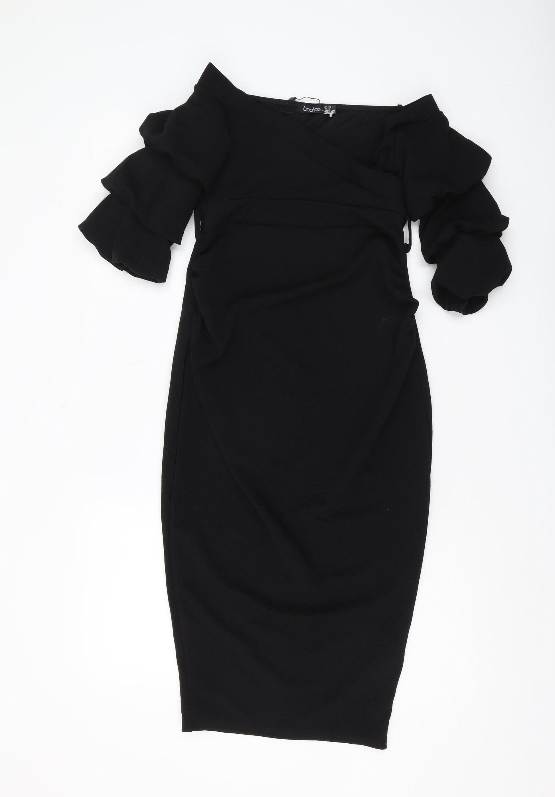 Boohoo Women's Black Bodycon Off-Shoulder Midi Dress