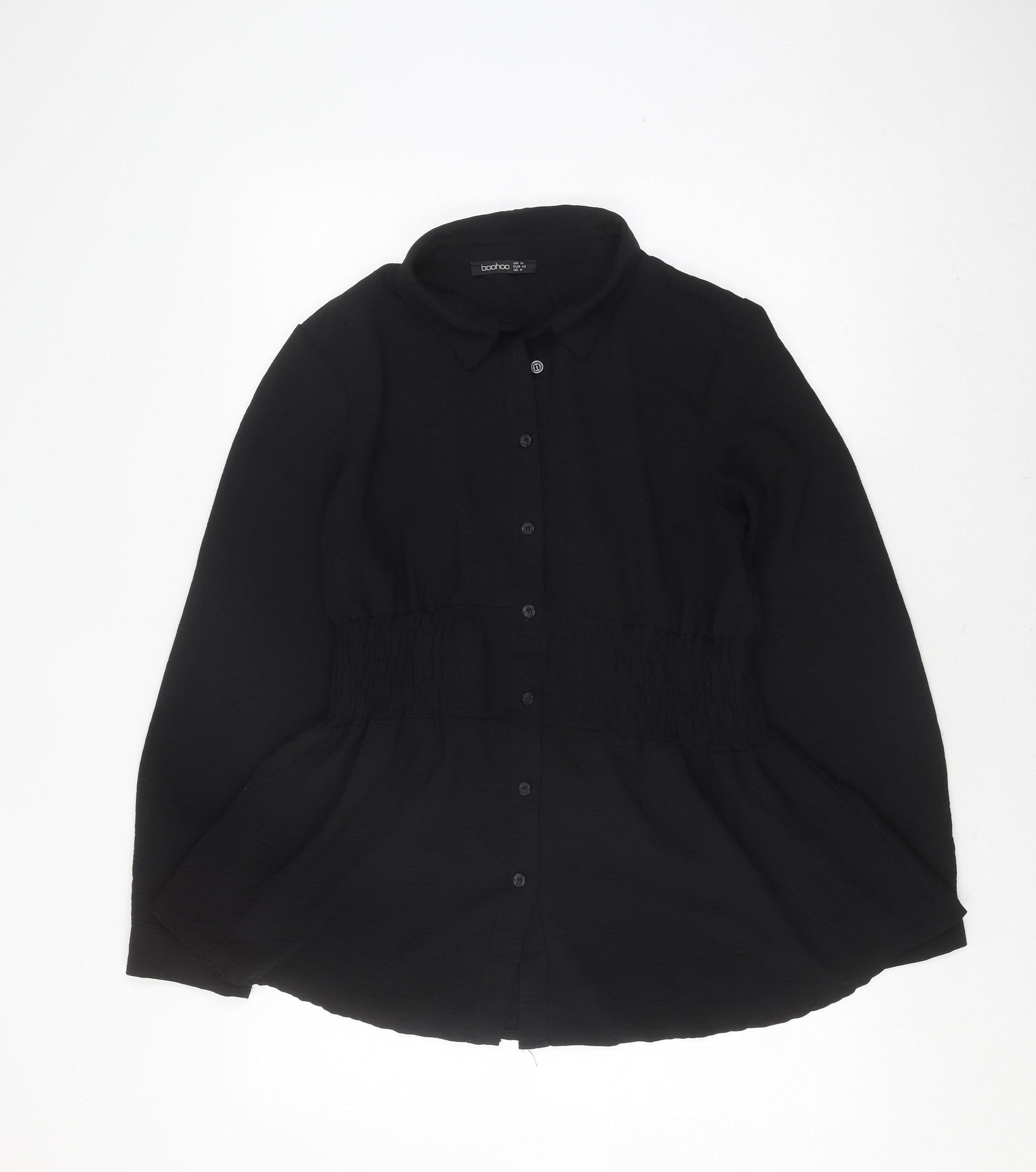 Boohoo Women's Black Button-Up Shirt Size 14