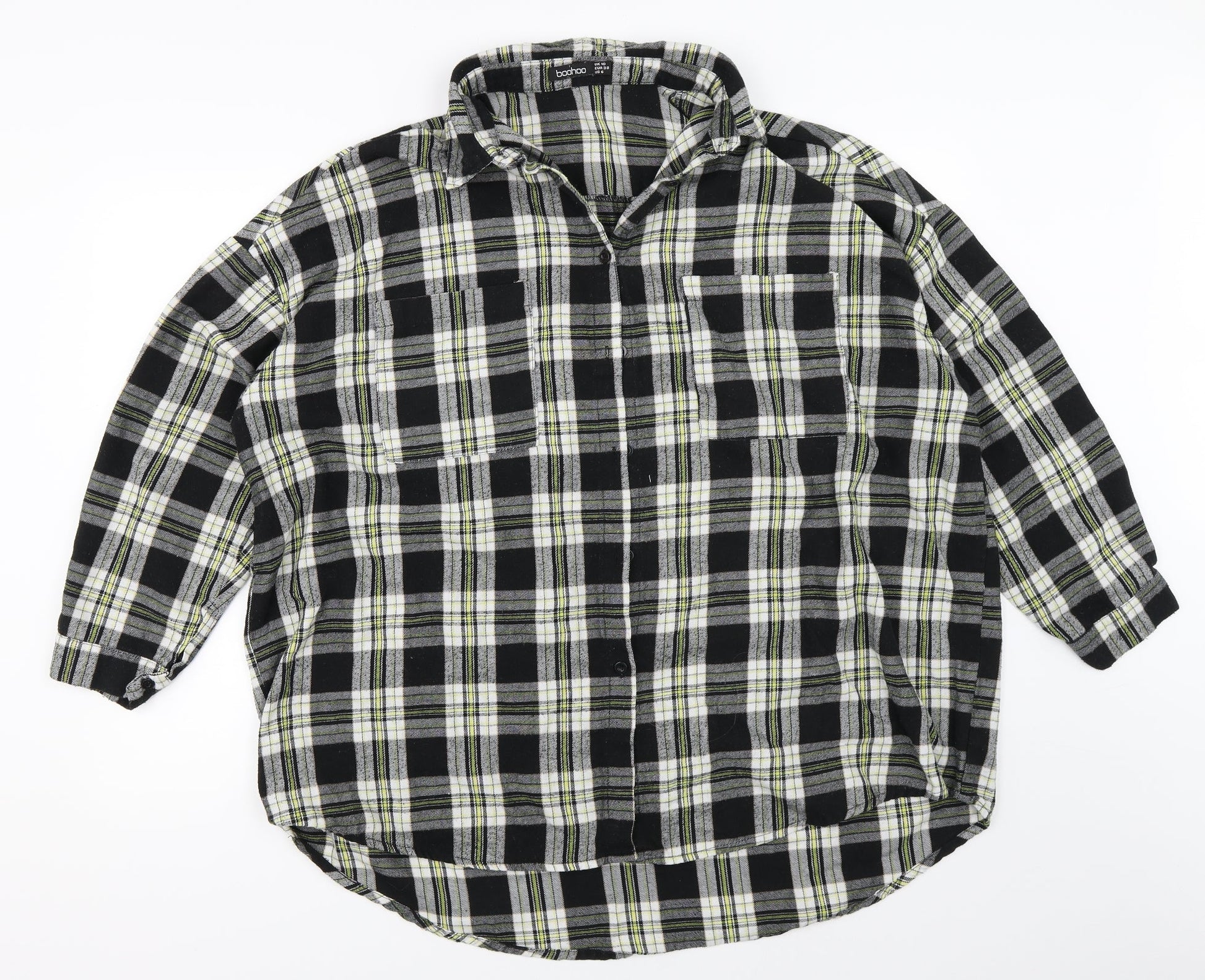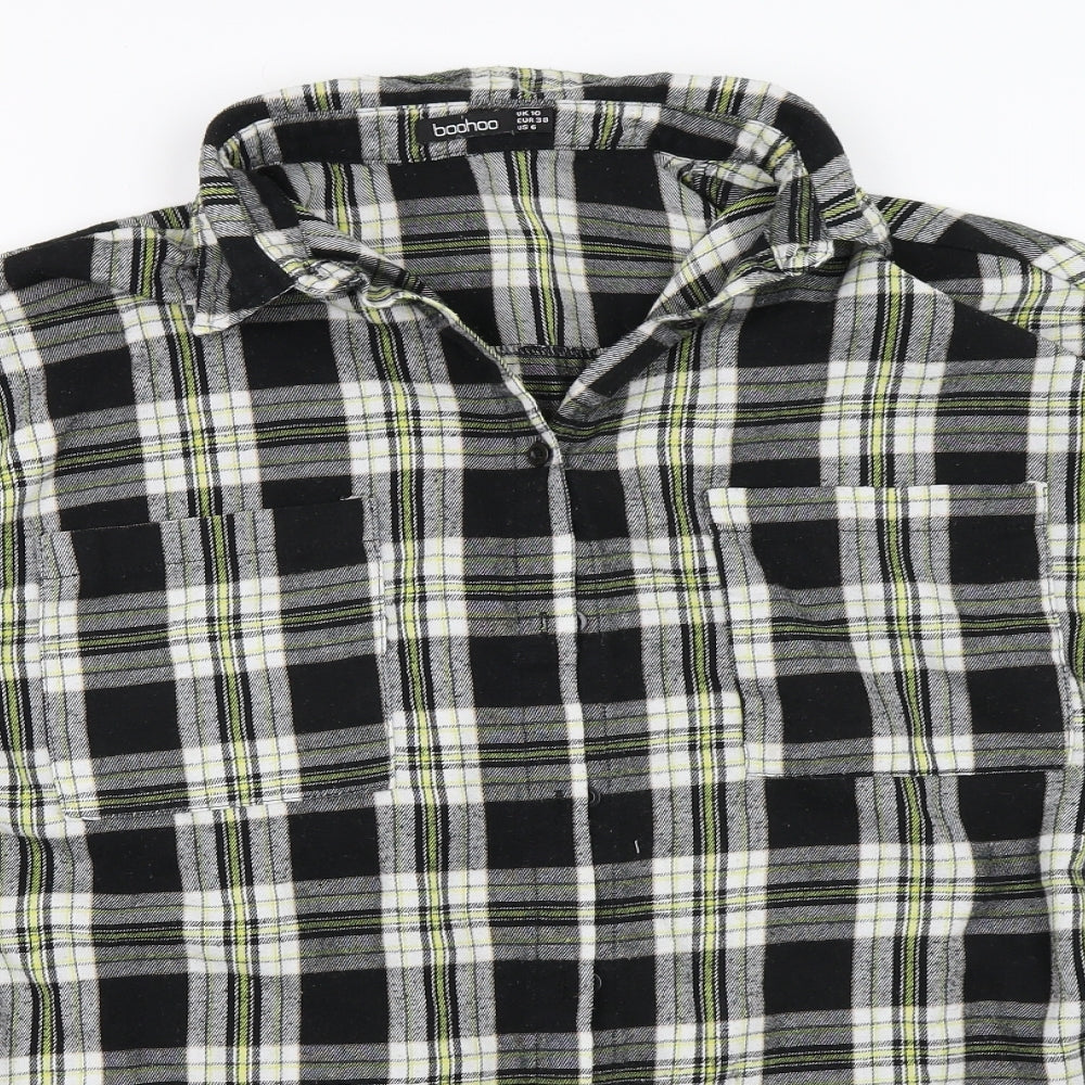 Boohoo Womens Black Check Basic Button-Up Size 10