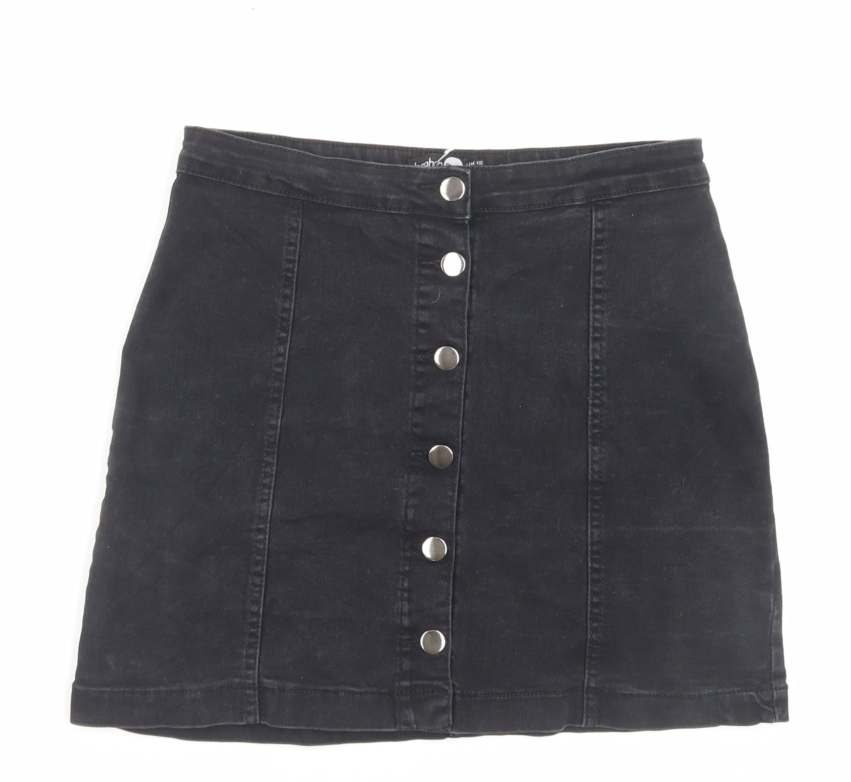 Boohoo Womens Black Cotton A-Line Skirt Size 12 Button