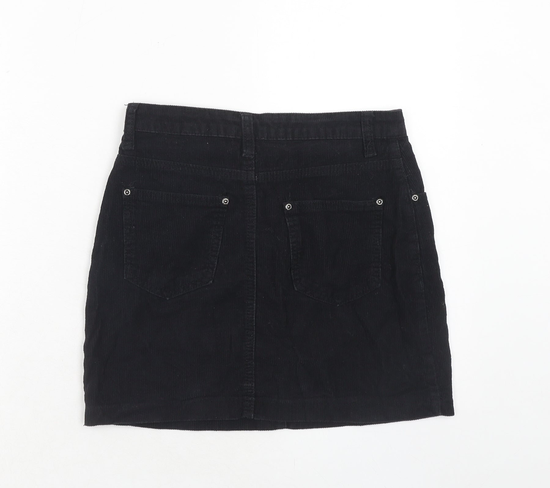 Boohoo Womens Black Cotton A-Line Skirt Size 6 Zip