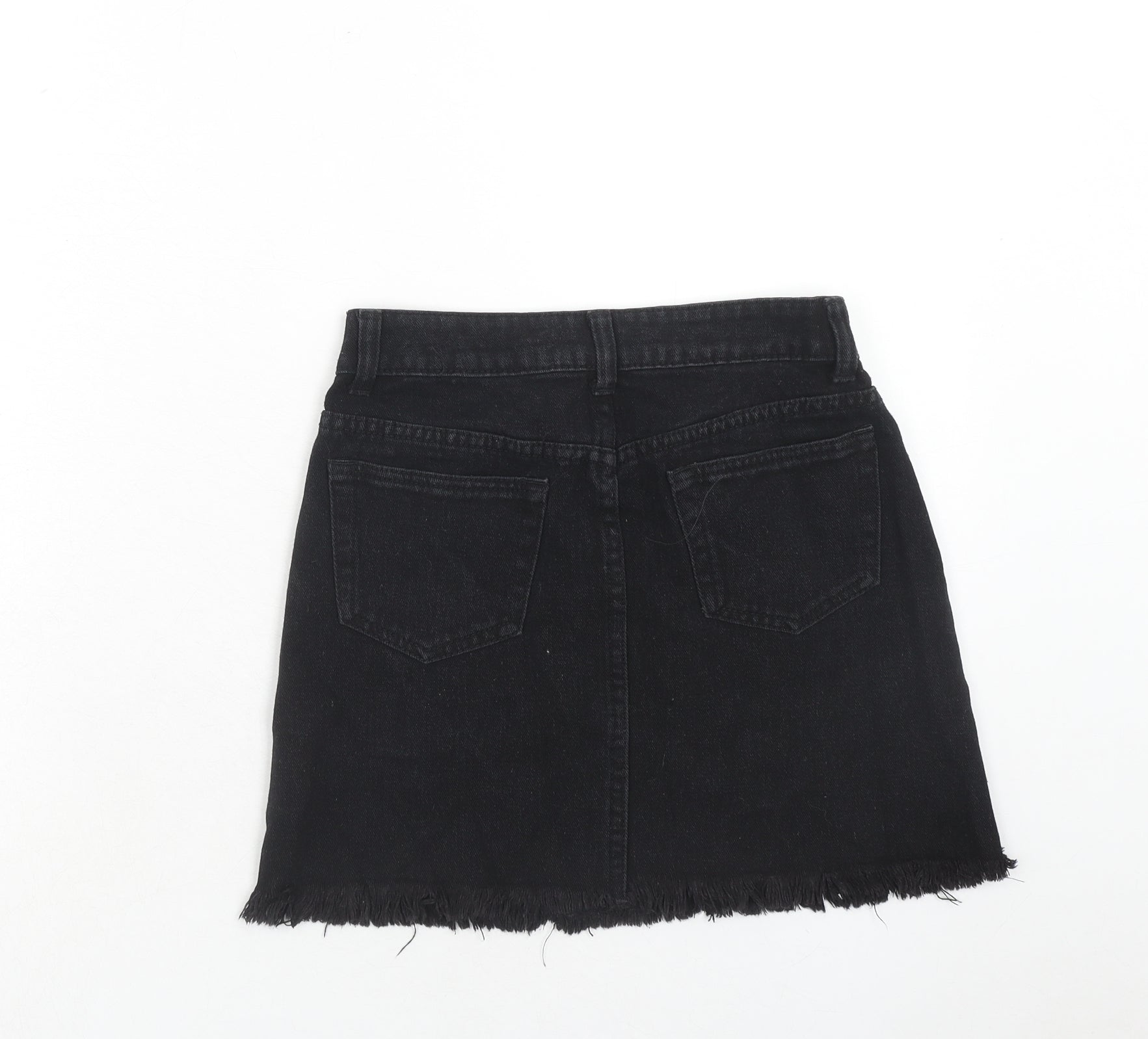 Boohoo Womens Black Cotton A-Line Skirt Size 6 Zip