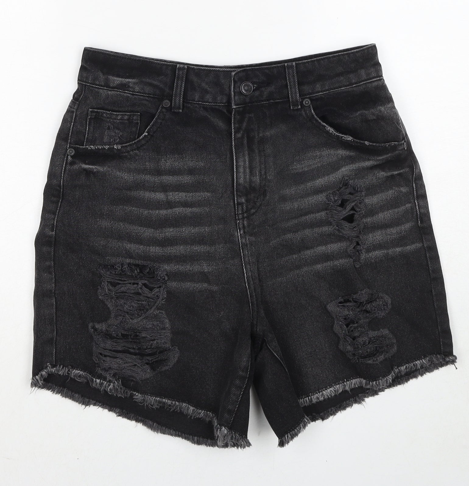 Boohoo Womens Black Cotton Cut-Off Shorts Size 8 Regular Zip - Distressed look