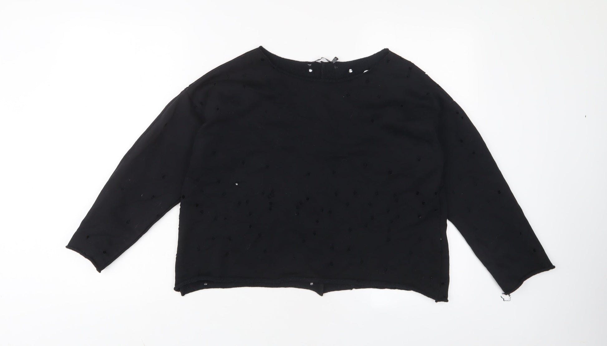 Boohoo Womens Black Cotton Pullover Sweatshirt Size 14 Pullover