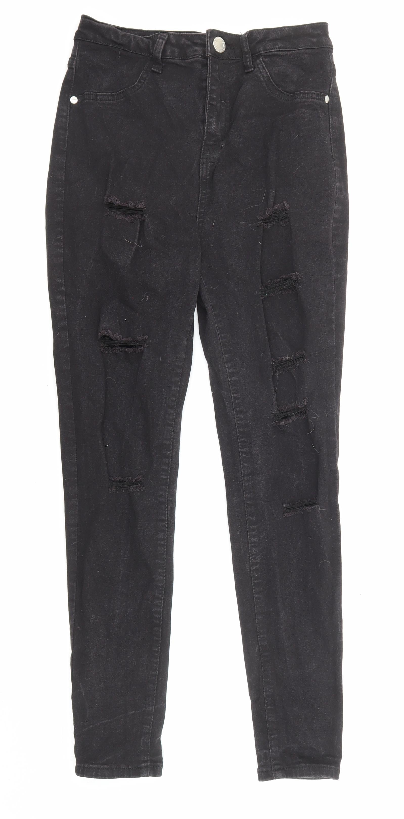 Boohoo Womens Black Cotton Skinny Jeans Size 10 L27 in Regular Zip - Pockets
