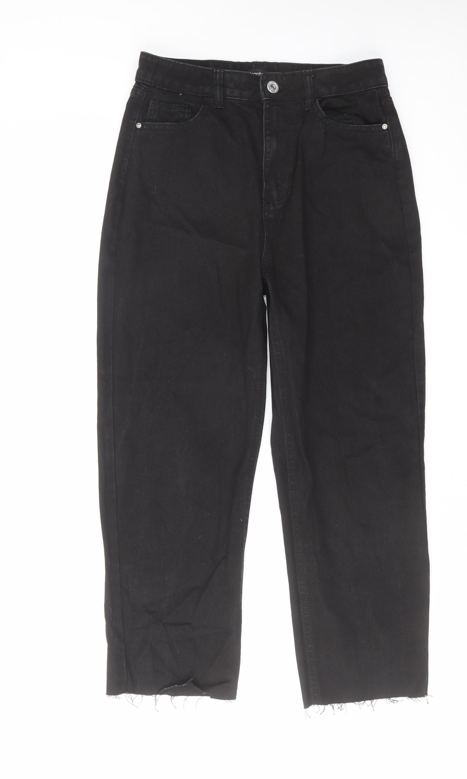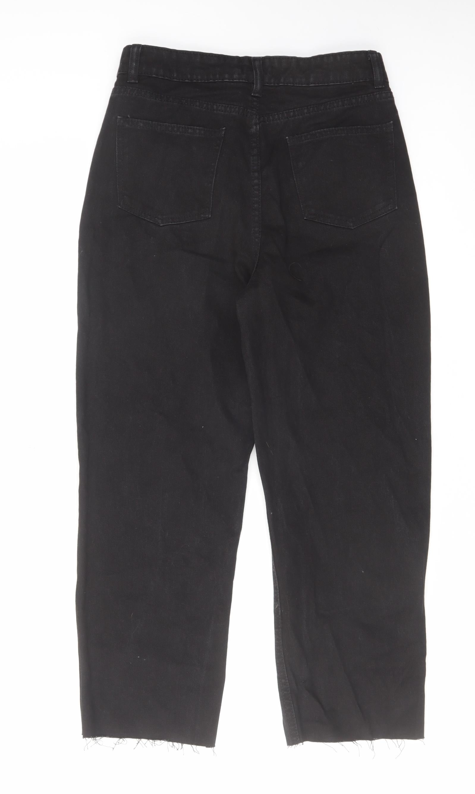Boohoo Womens Black Cotton Straight Jeans Size 10 L25 in Regular Zip - Raw Hem