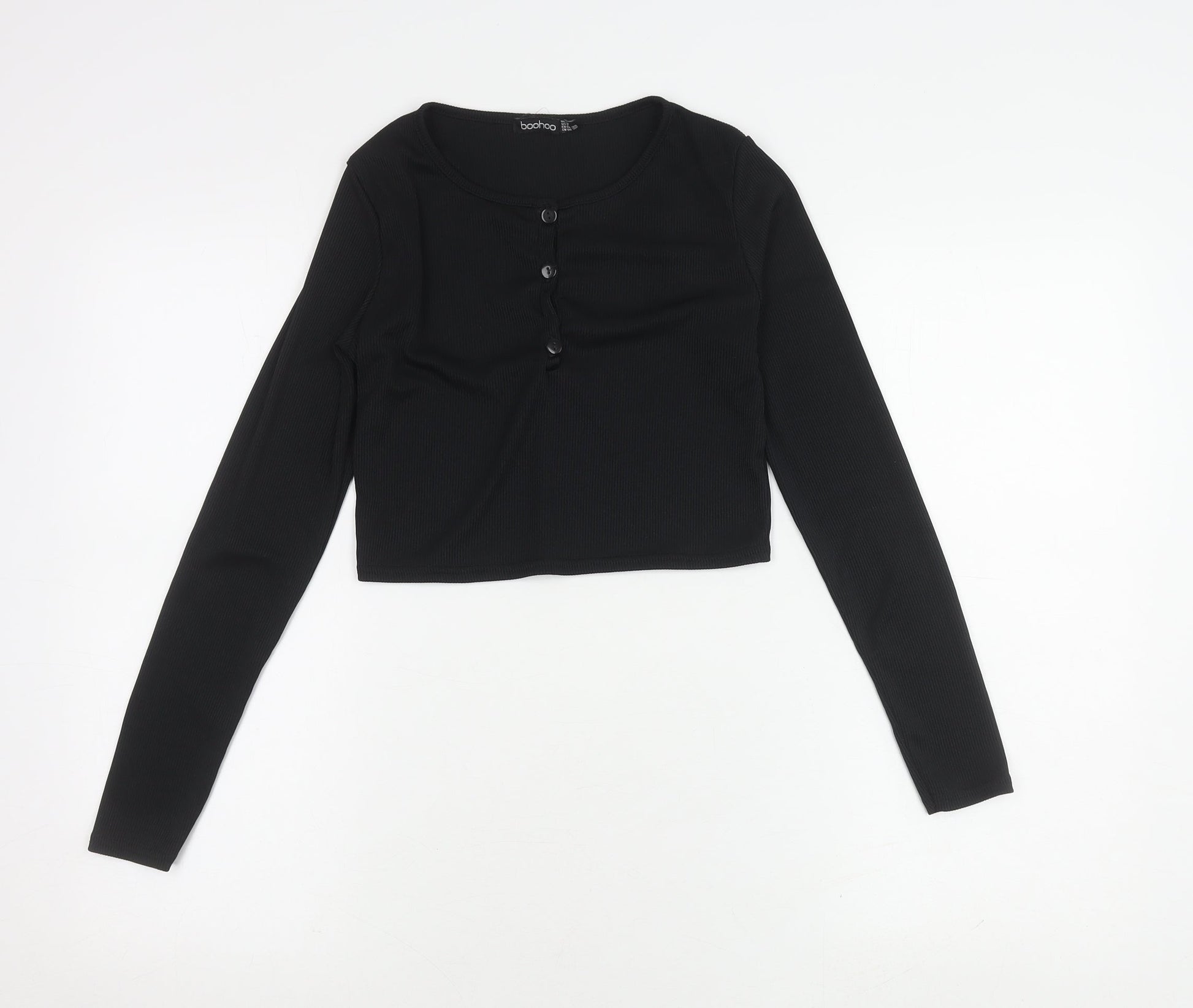 boohoo Women's Black Cropped Button-Up Top Size 10