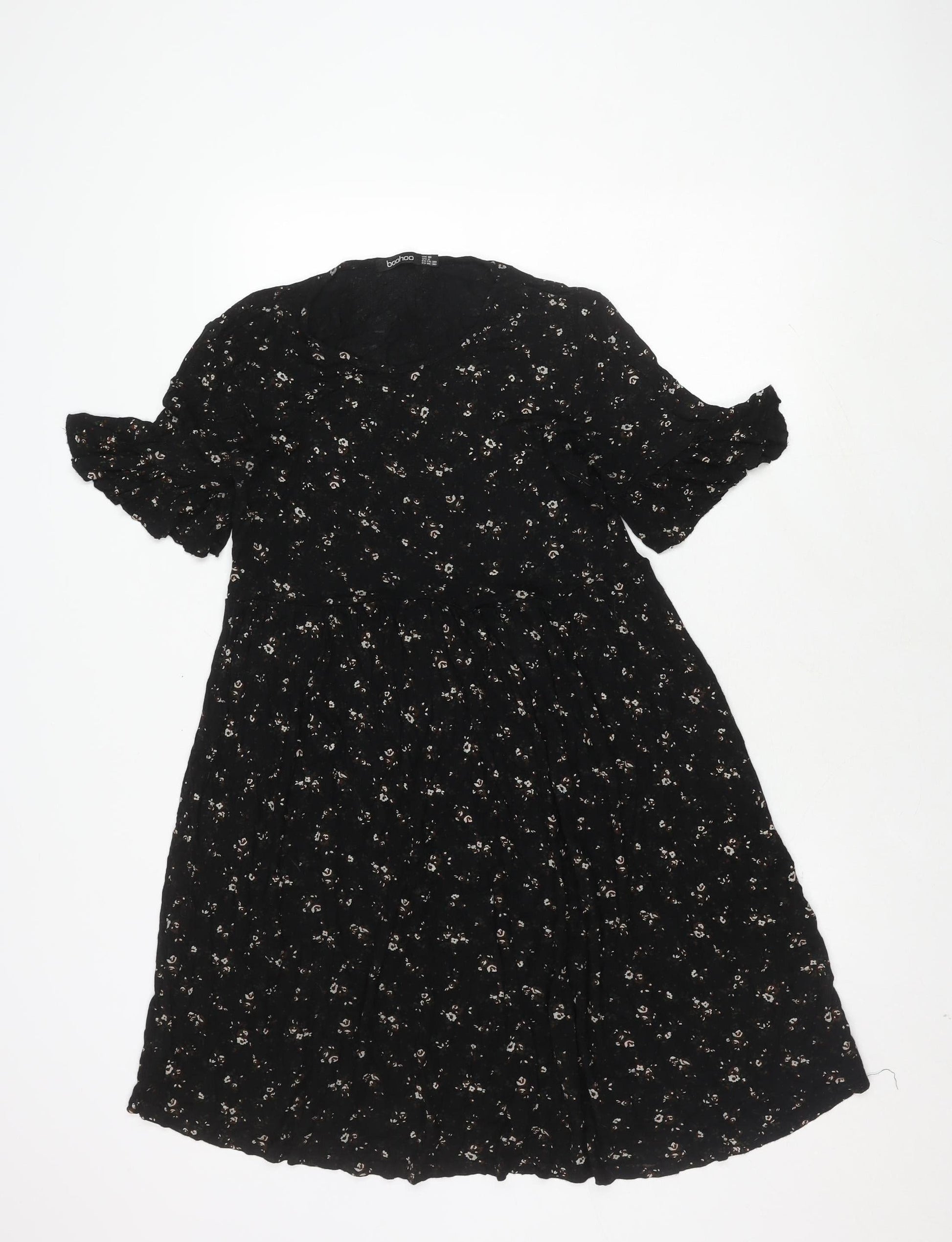 Boohoo Women's Black Floral A-Line Dress Size 10