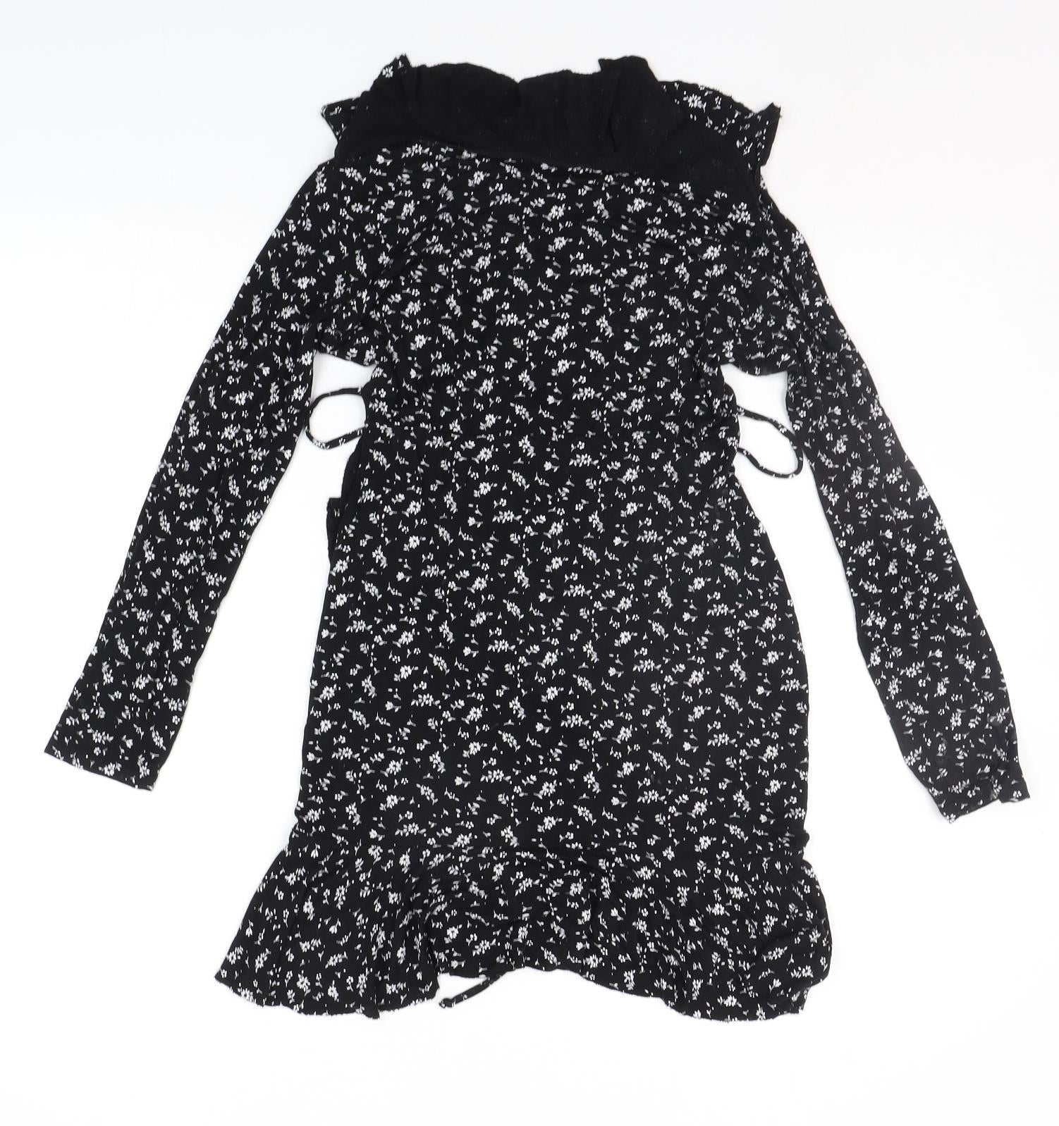 Boohoo Womens Black Floral Basic T-Shirt Size 8