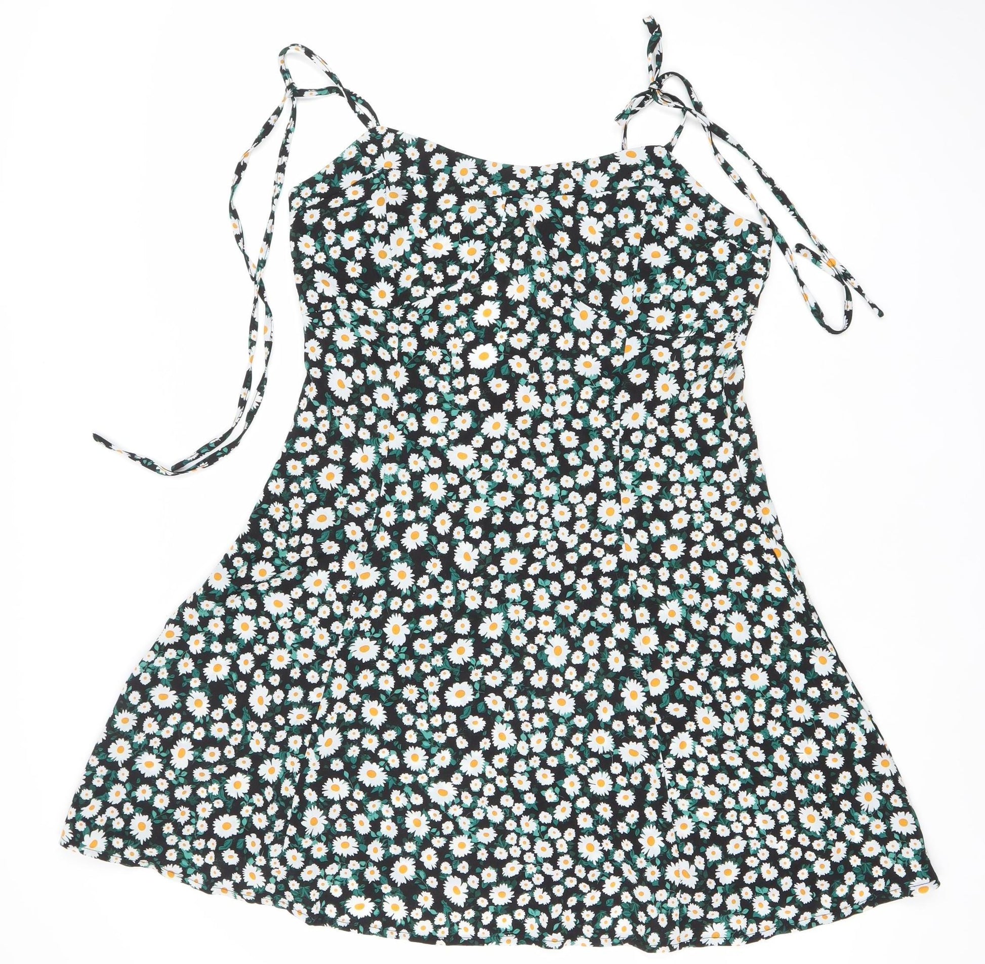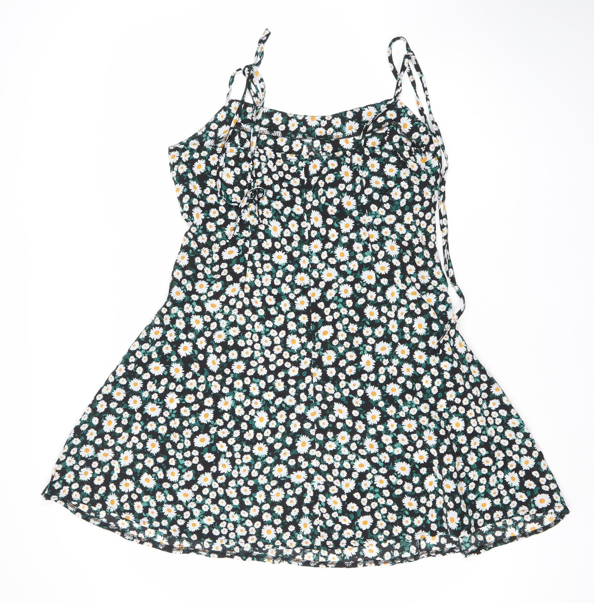 Boohoo Womens Black Floral Daisy Print Mini Slip Dress Size 16