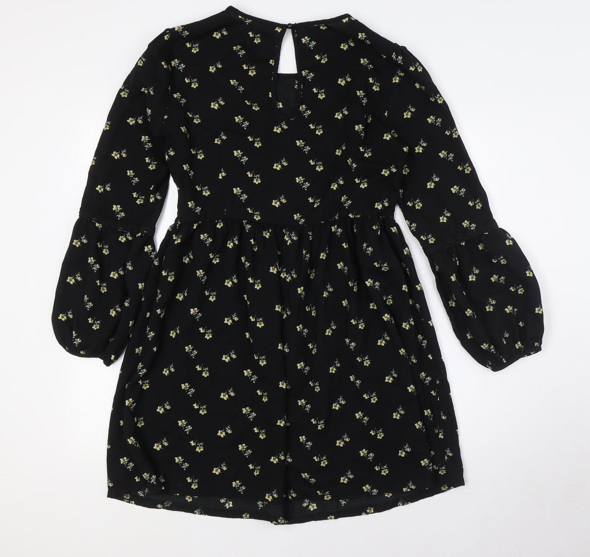 Boohoo Womens Black Floral Polyester A-Line Size 12 Round Neck Zip - Lace Detail