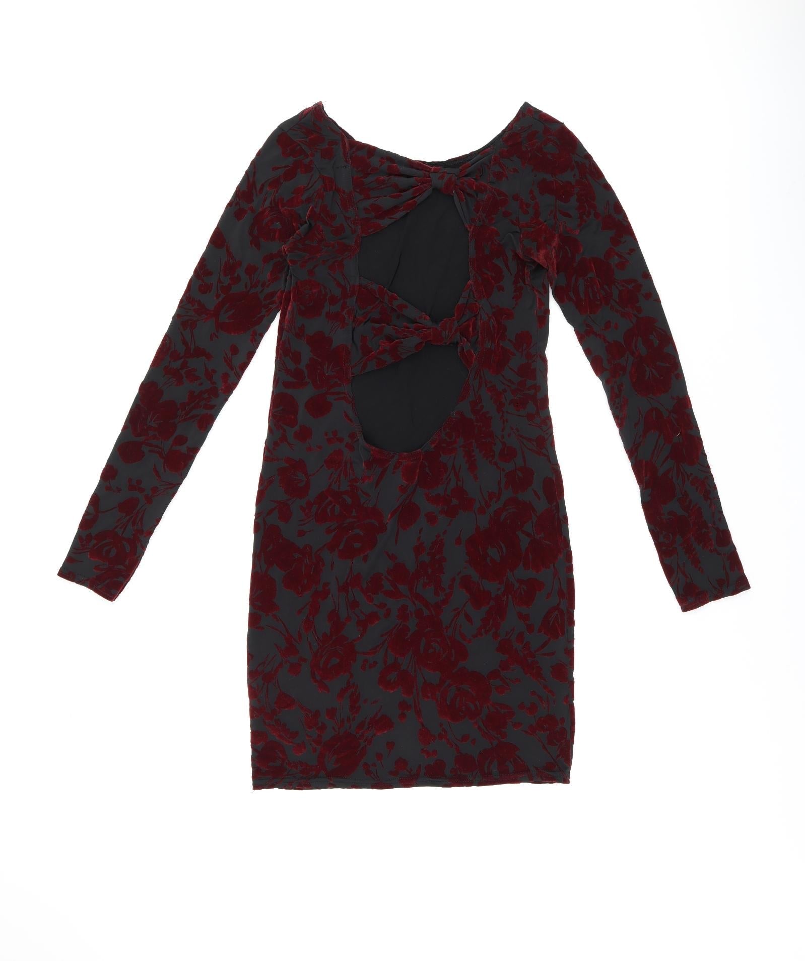 Boohoo Womens Black Floral Polyester Bodycon Size 8 Boat Neck Pullover - Cut Out Back