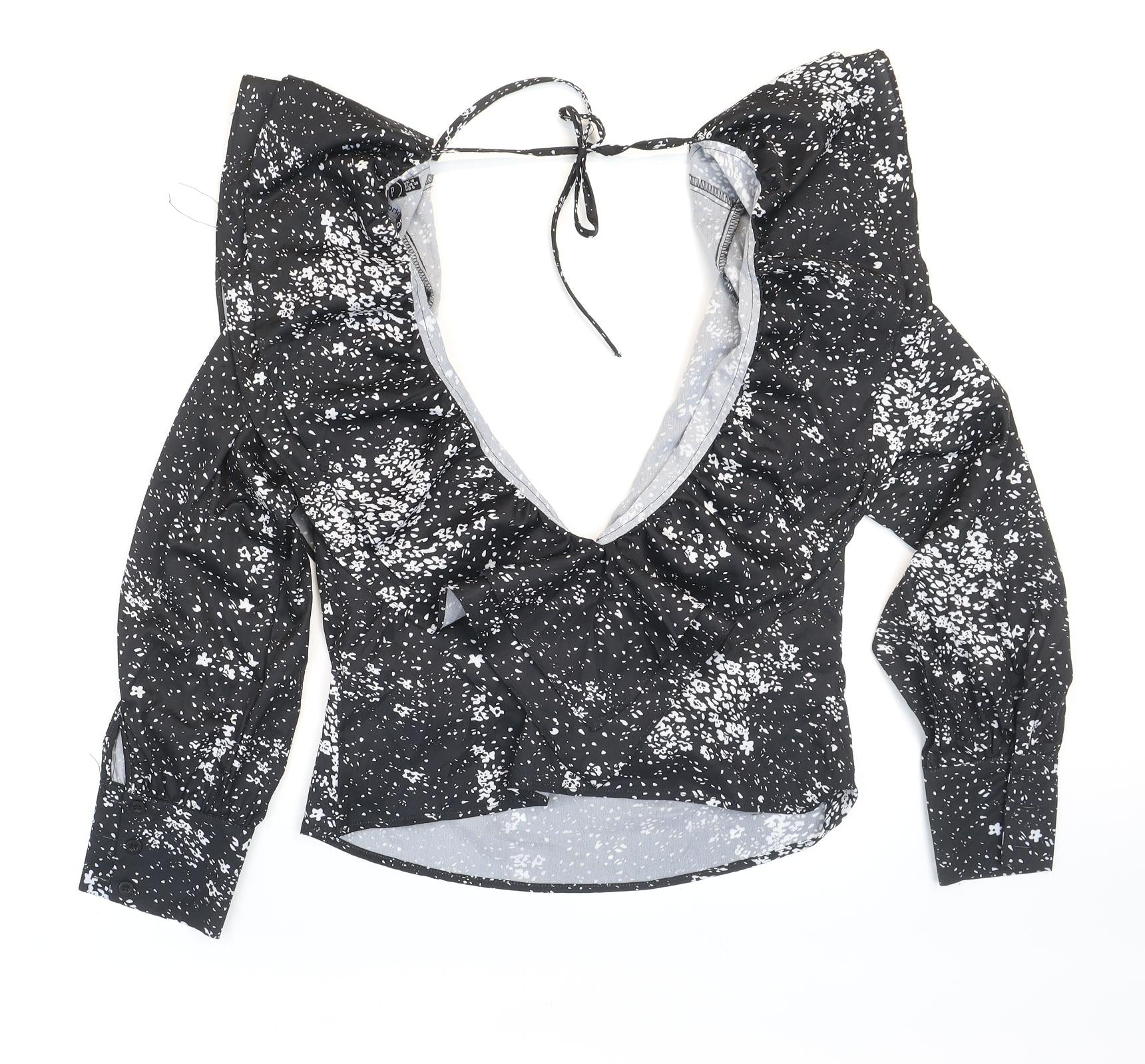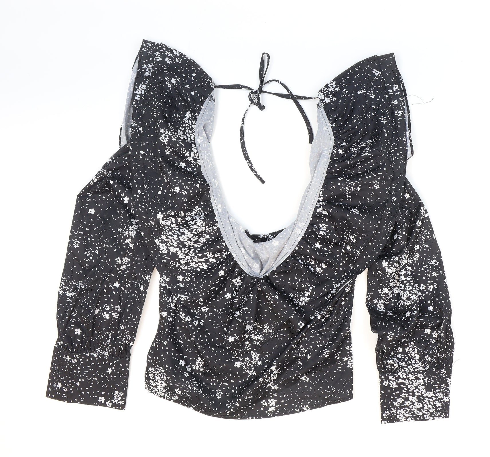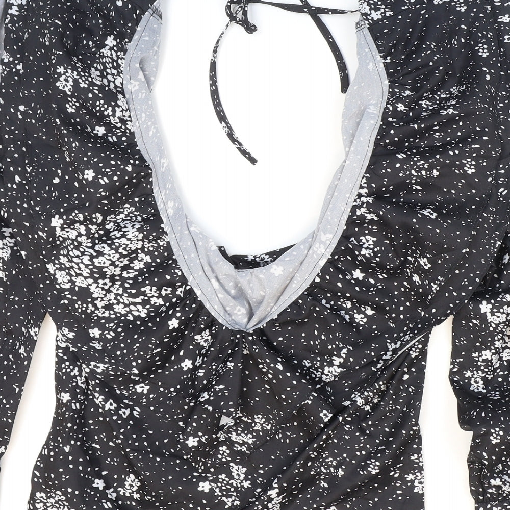 Boohoo Womens Black Floral Polyester Cropped Blouse Size 10 Halter
