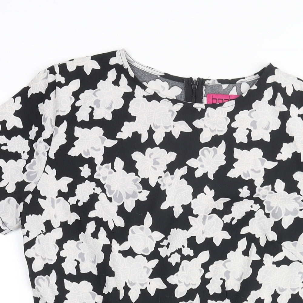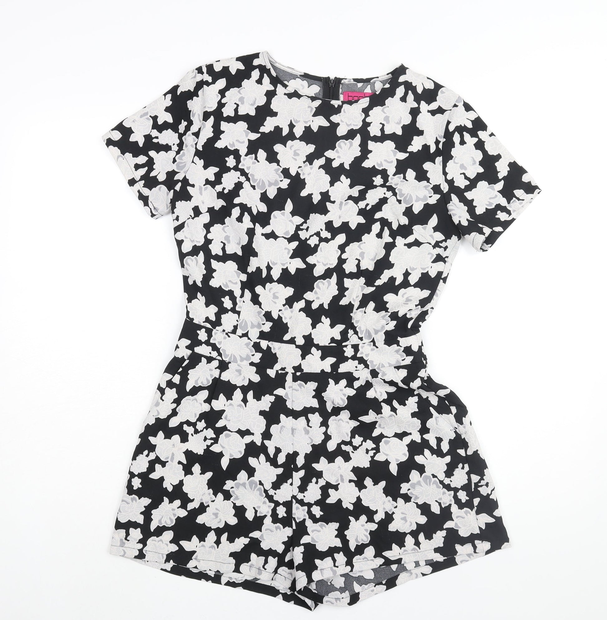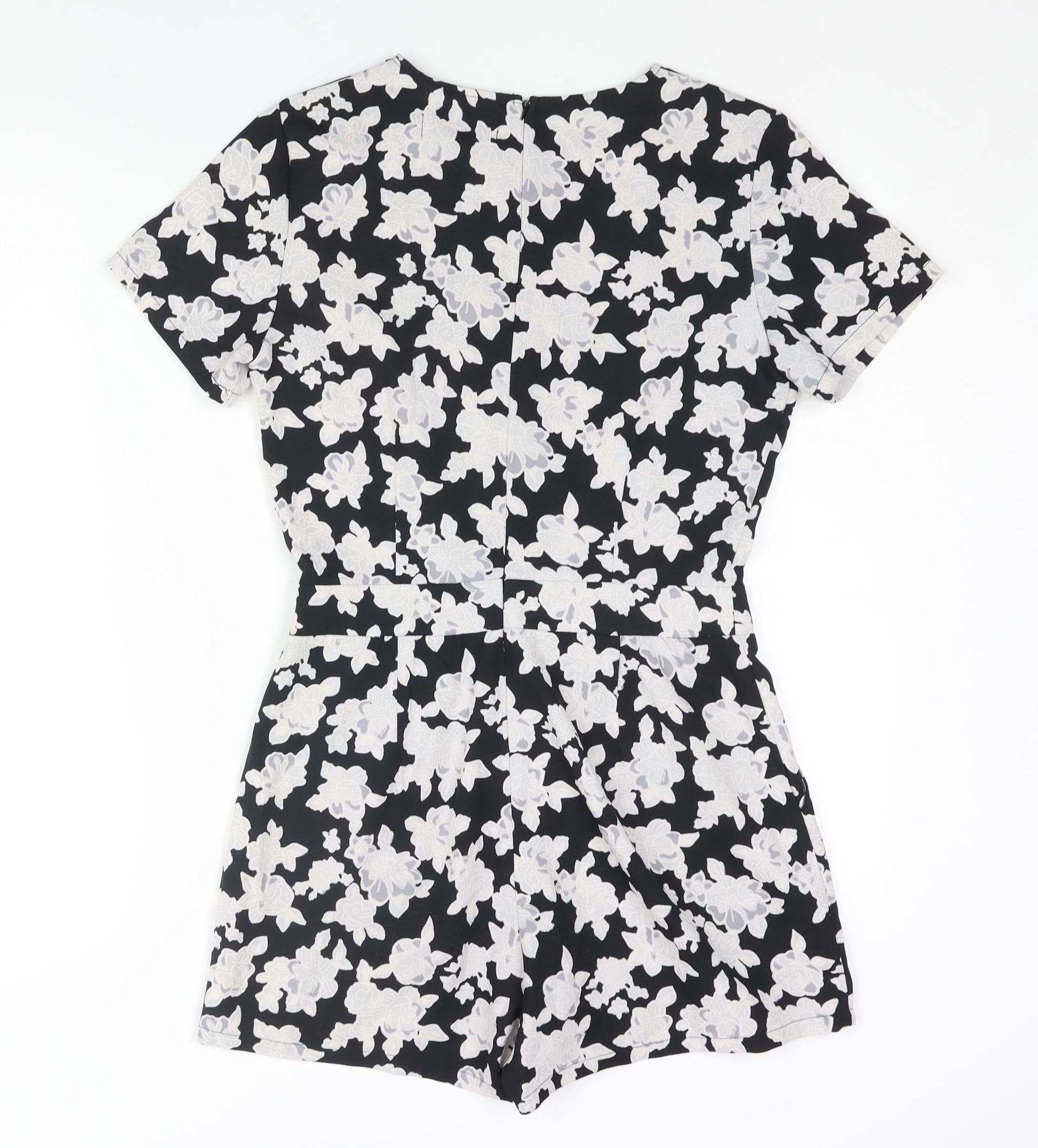 Boohoo Womens Black Floral Polyester Playsuit One-Piece Size 10 Zip