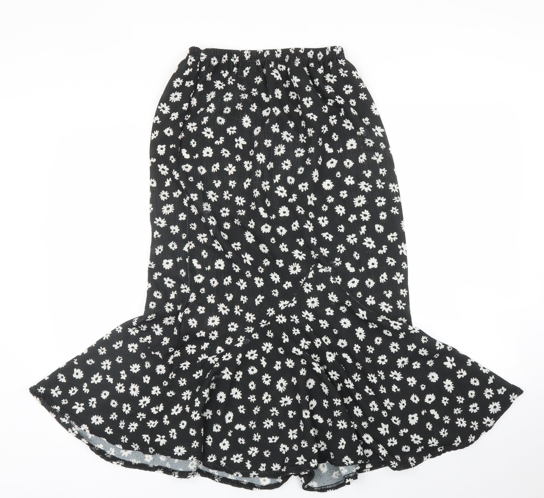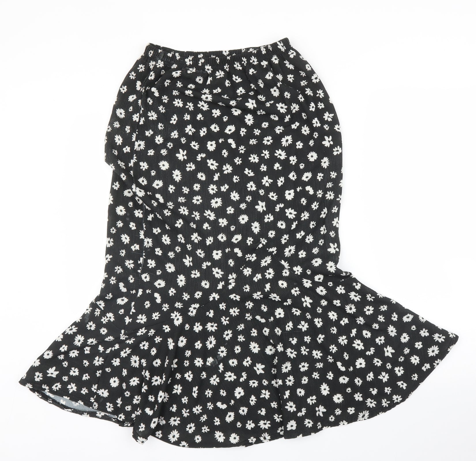 Boohoo Womens Black Floral Trumpet Skirt Size 10
