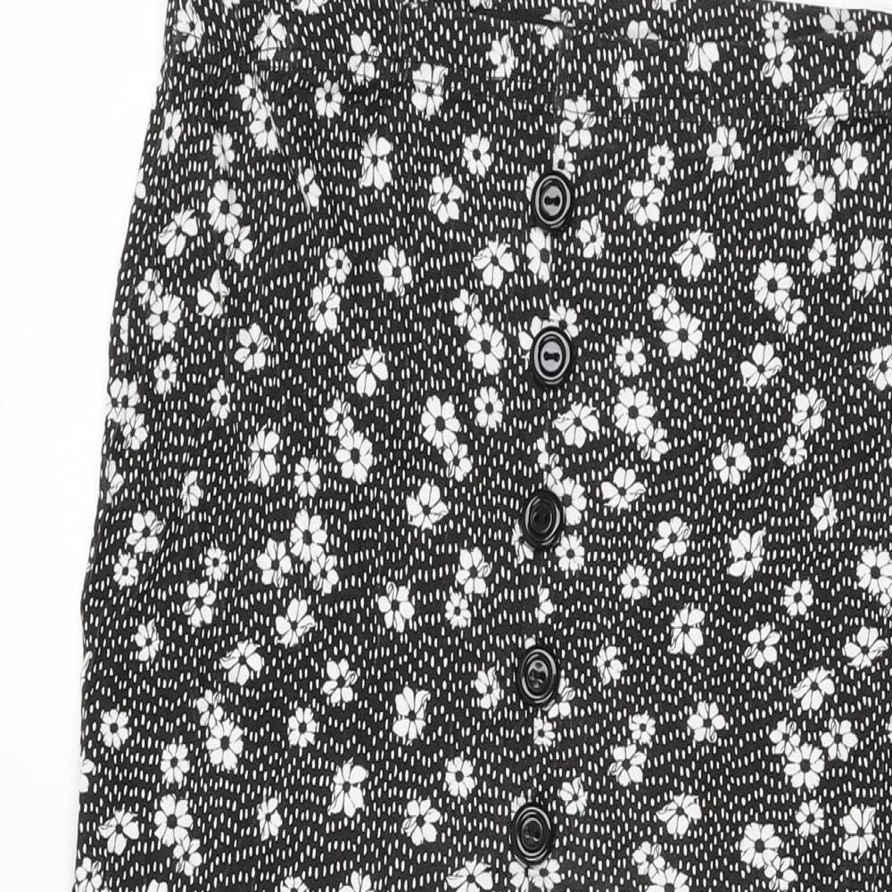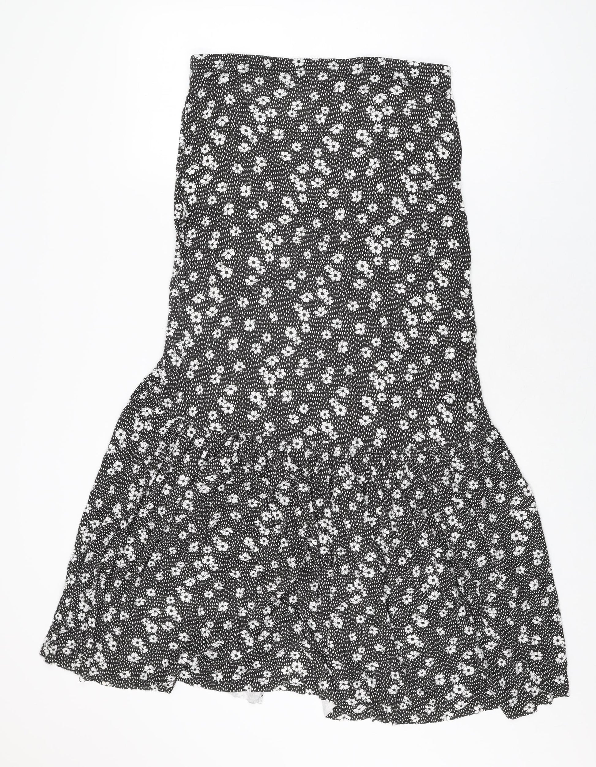 Boohoo Womens Black Floral Viscose Flare Skirt Size 14