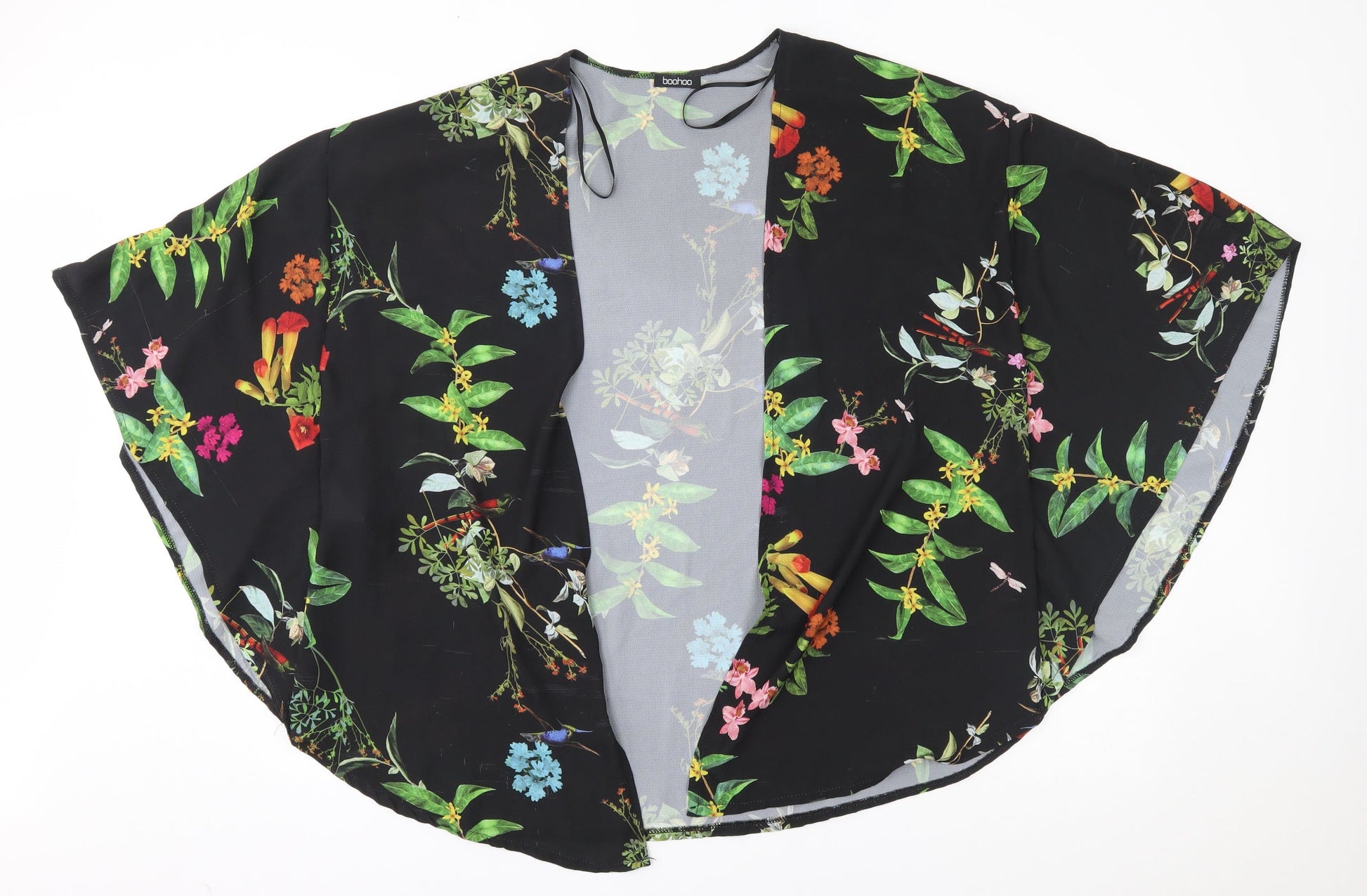 Boohoo Womens Black Floral Wrap Blouse Size L