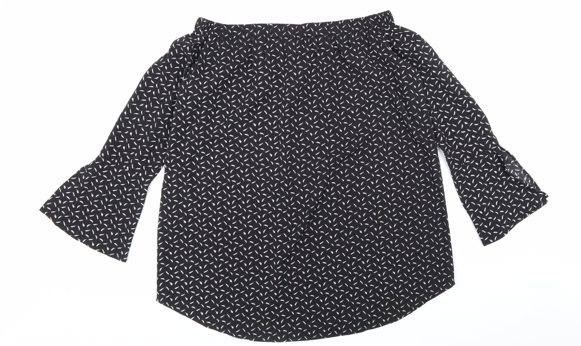 Boohoo Womens Black Geometric Polyester Basic Blouse Size 12 Off the Shoulder - Bardot