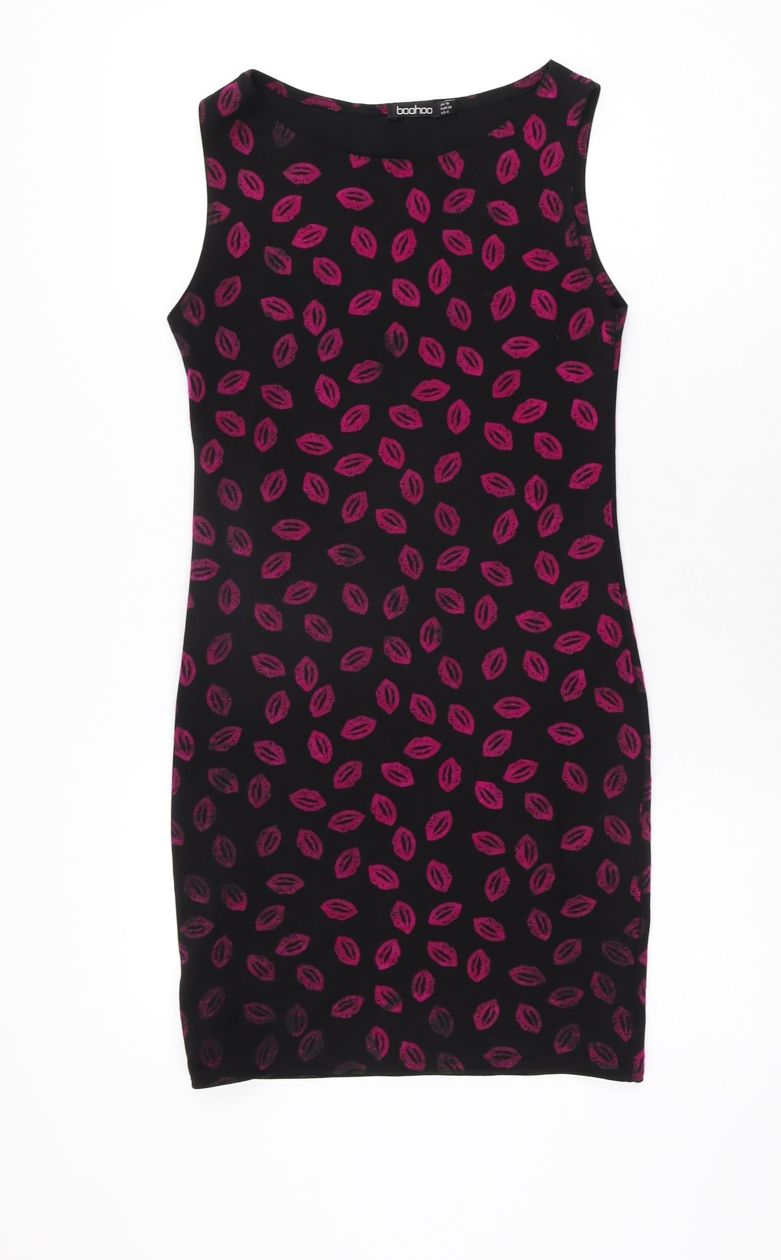 Boohoo Womens Black Geometric Polyester Bodycon Size 10 Boat Neck Pullover