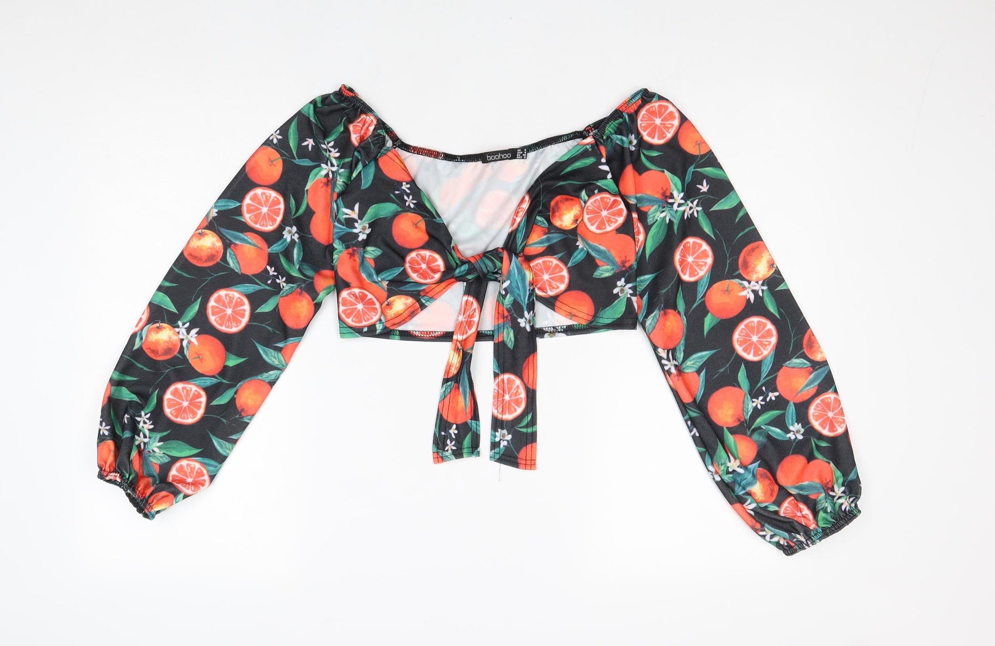Boohoo Womens Black Geometric Polyester Cropped Blouse Size 8 V-Neck