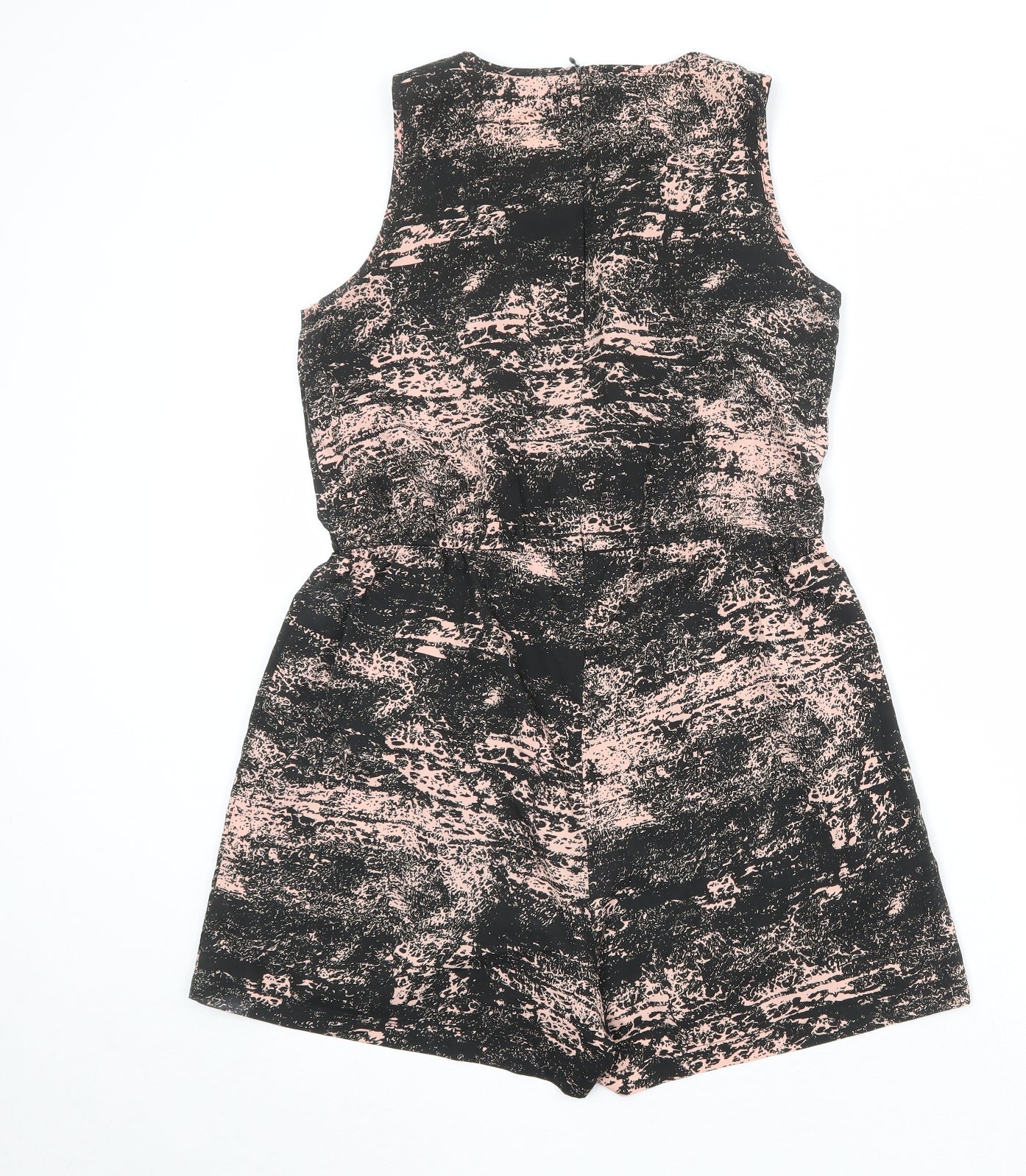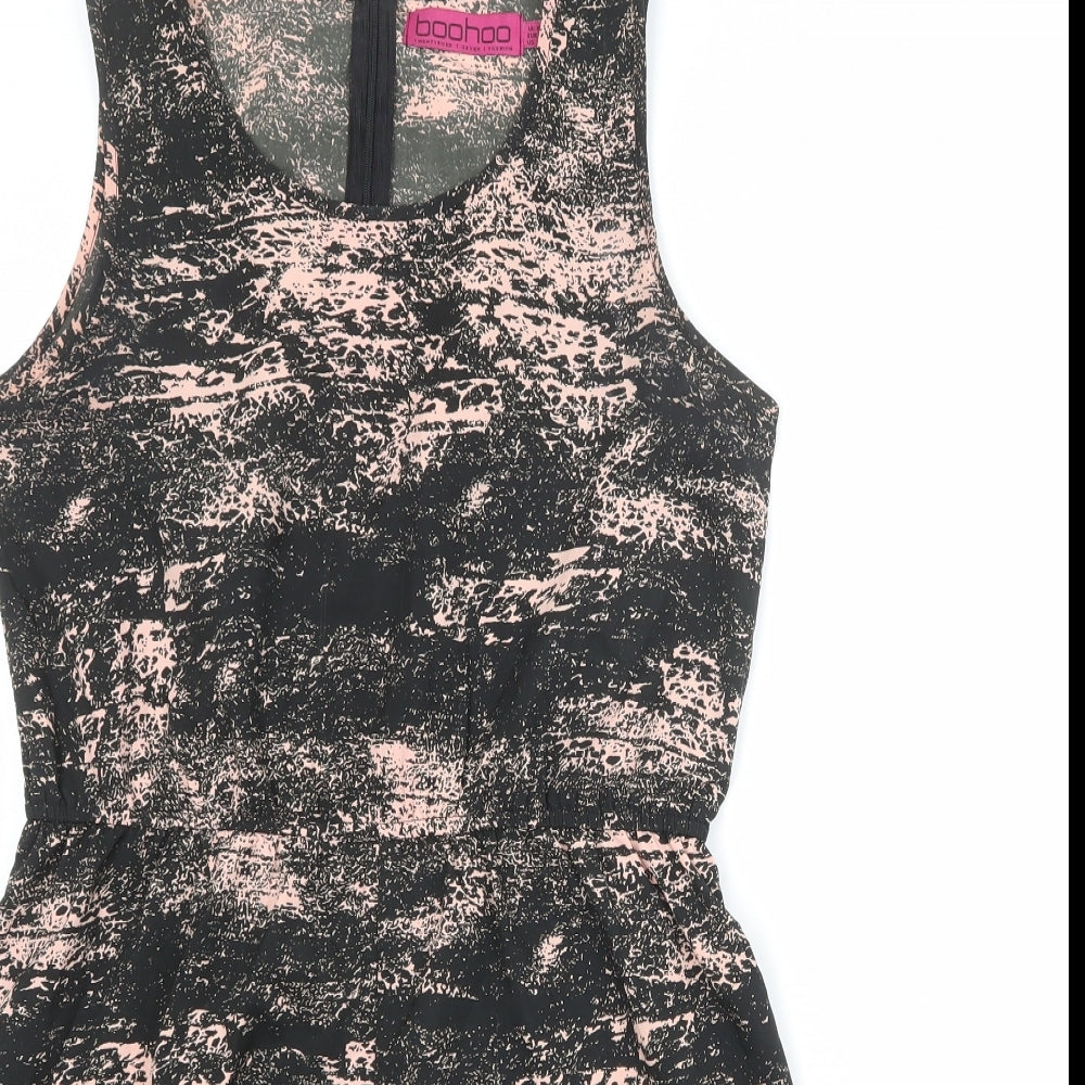 Boohoo Womens Black Geometric Polyester Playsuit One-Piece Size 10 Zip