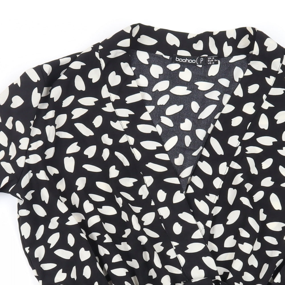 Boohoo Womens Black Geometric Polyester Playsuit One-Piece Size 6 Pullover - Elasticated Waist Belted