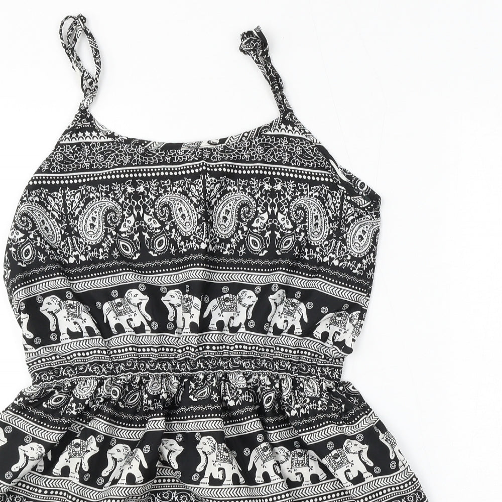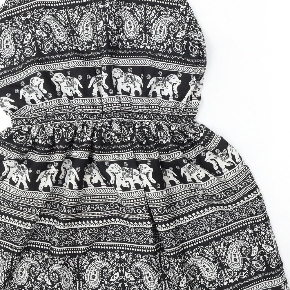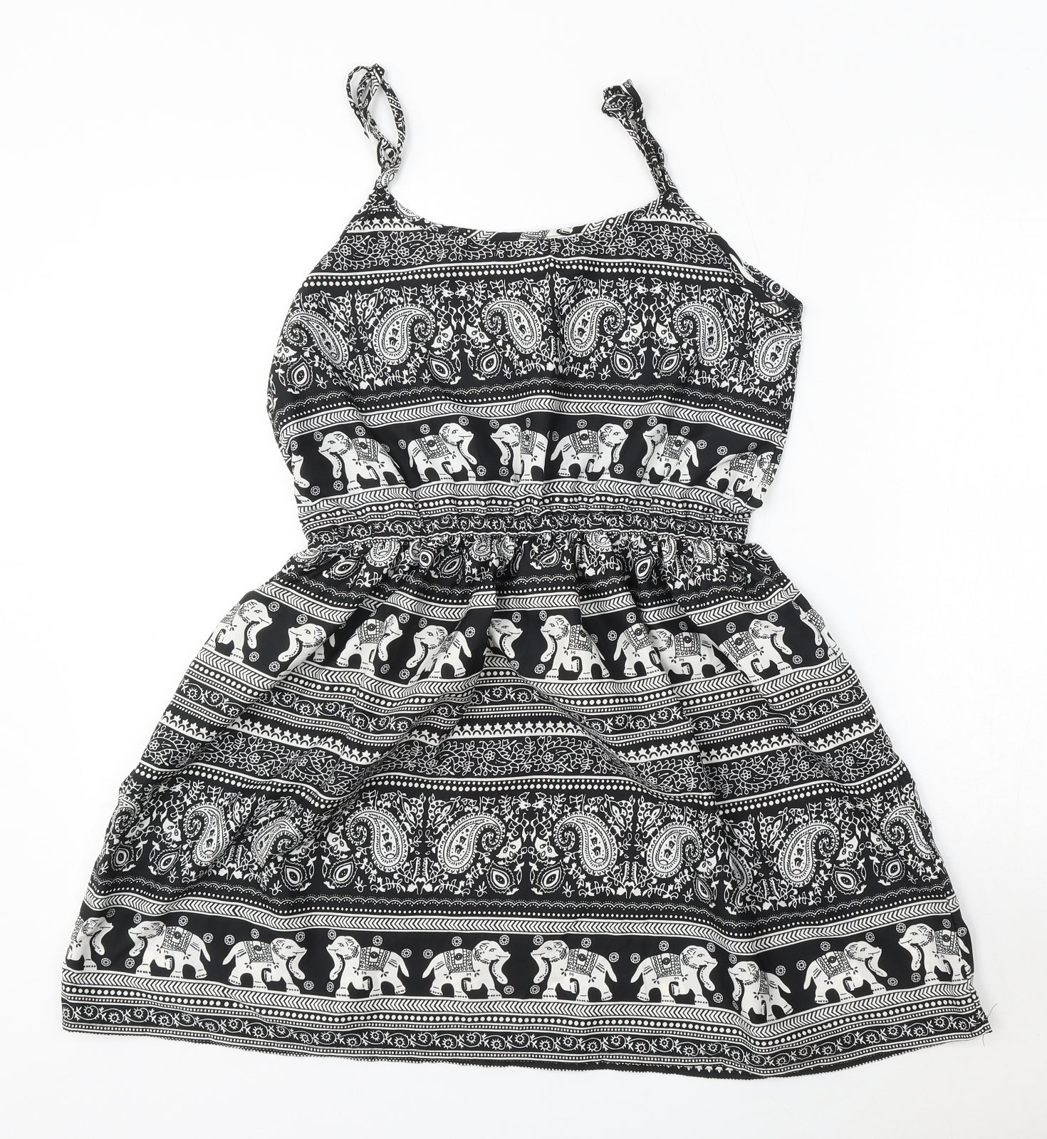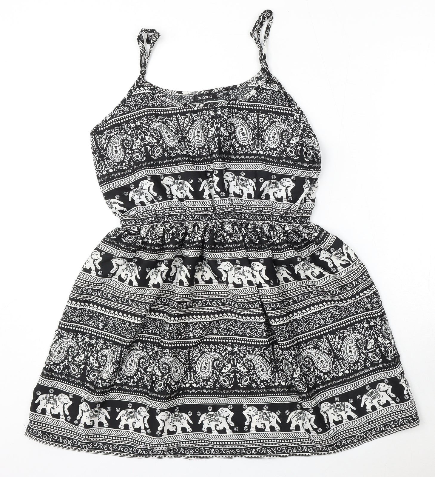 Boohoo Womens Black Geometric Polyester Shift Size 8 Round Neck