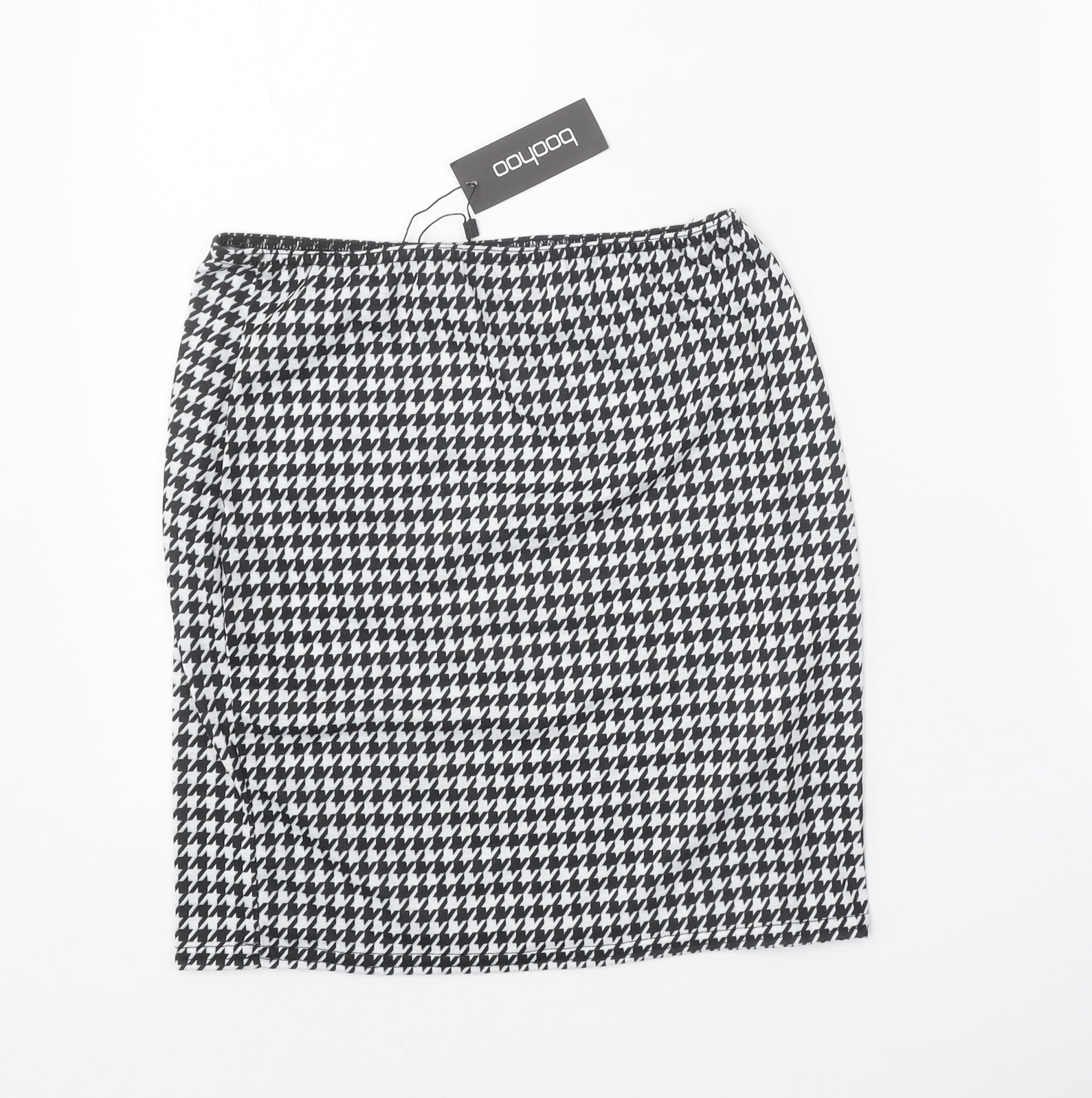 Boohoo Womens Black Geometric Polyester Straight & Pencil Skirt Size 10 - Houndstooth Pattern