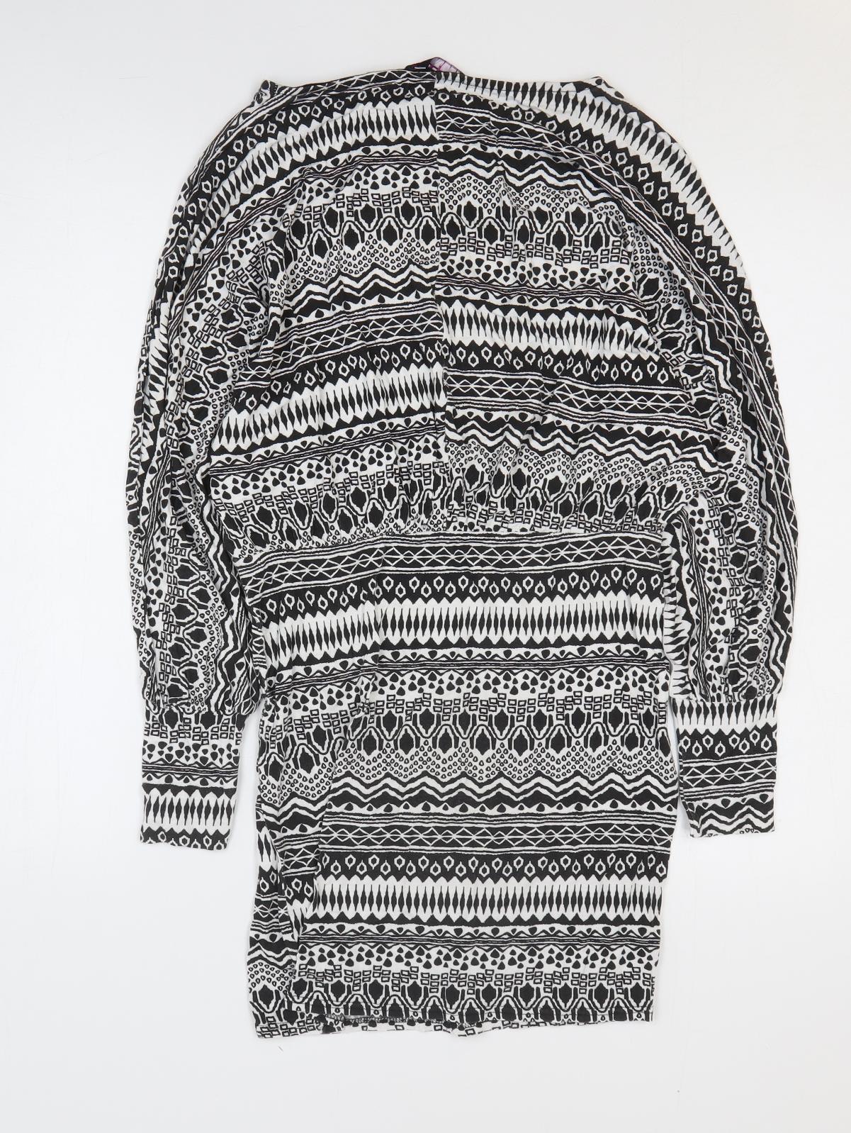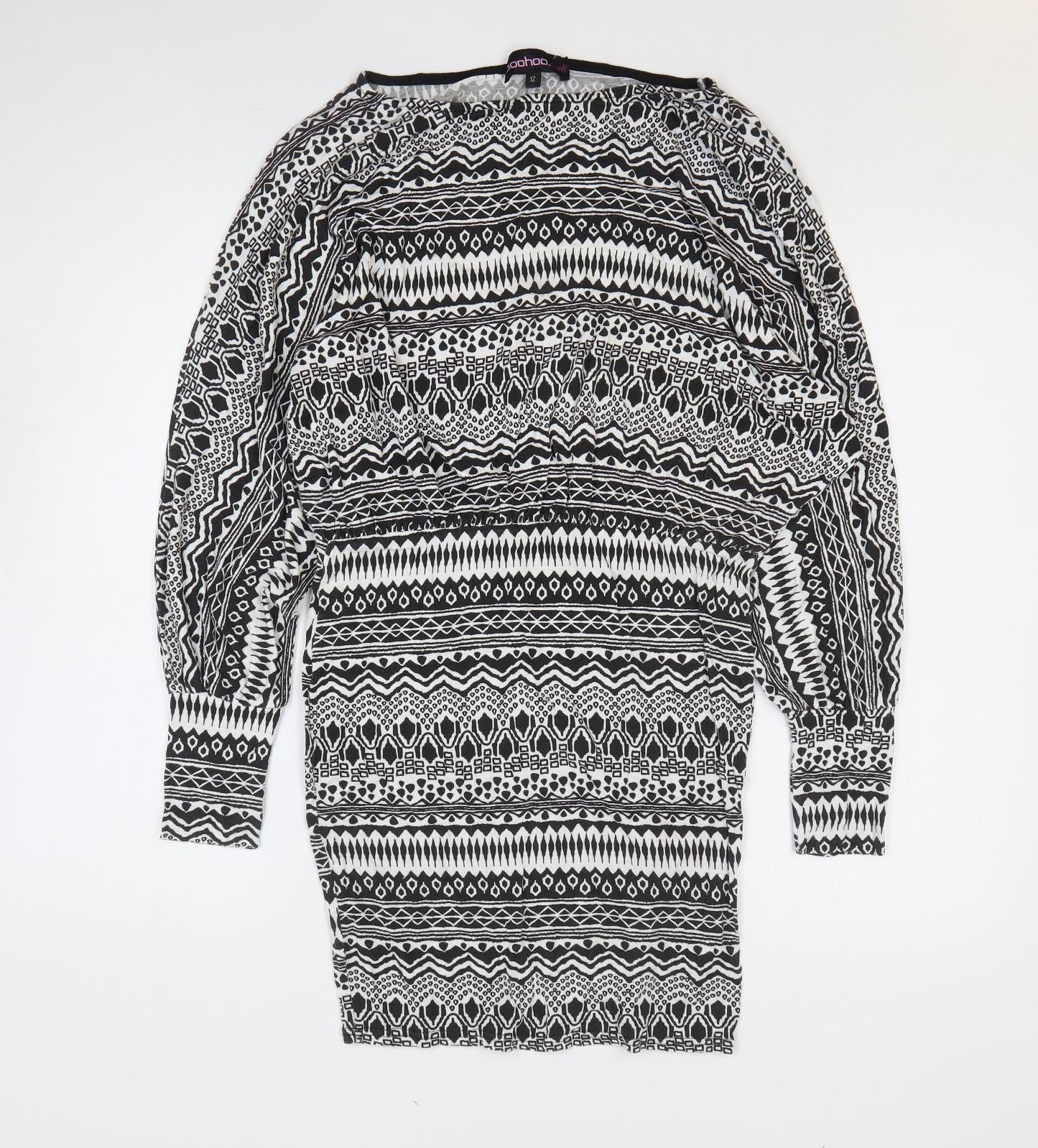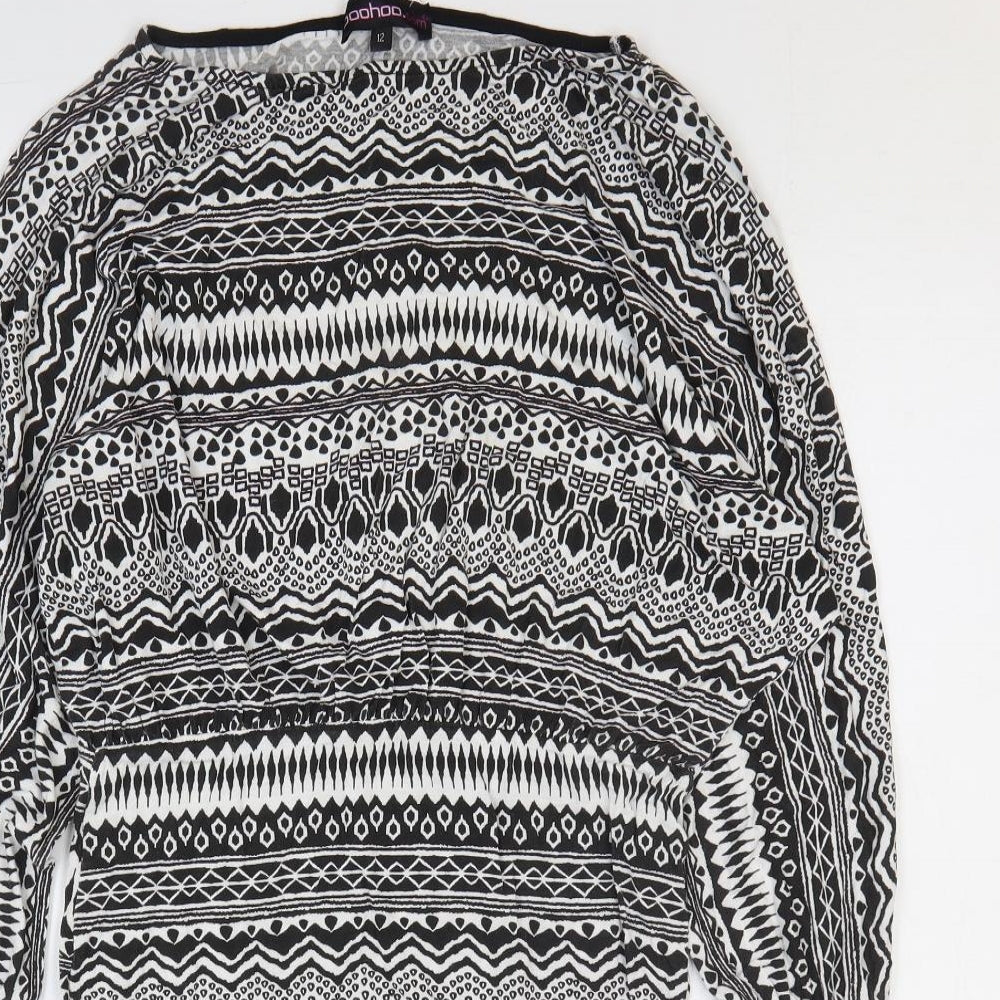 Boohoo Womens Black Geometric Viscose Bodycon Size 12 Round Neck Pullover