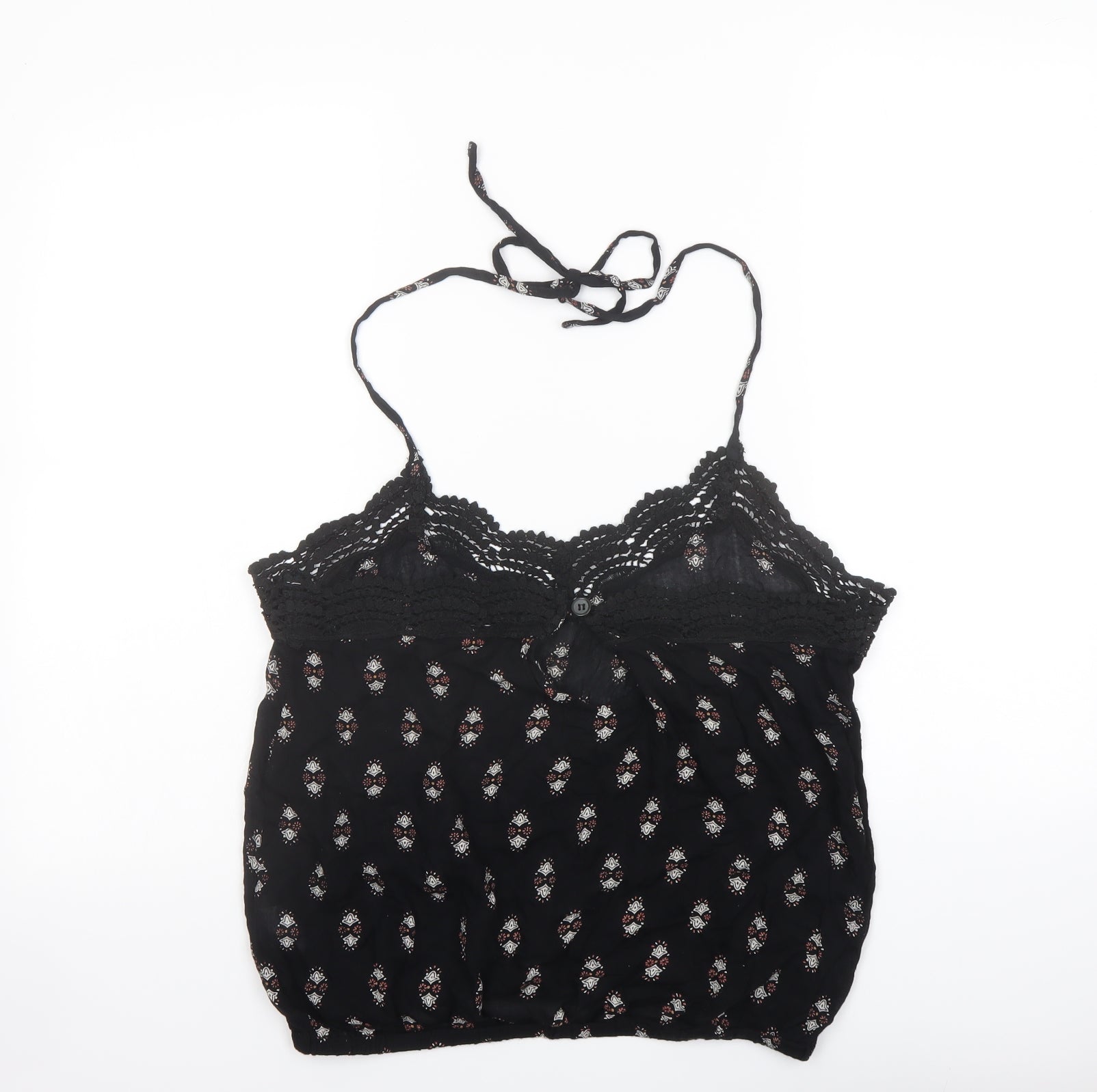 Boohoo Womens Black Geometric Viscose Cropped Tank Size 14 Halter