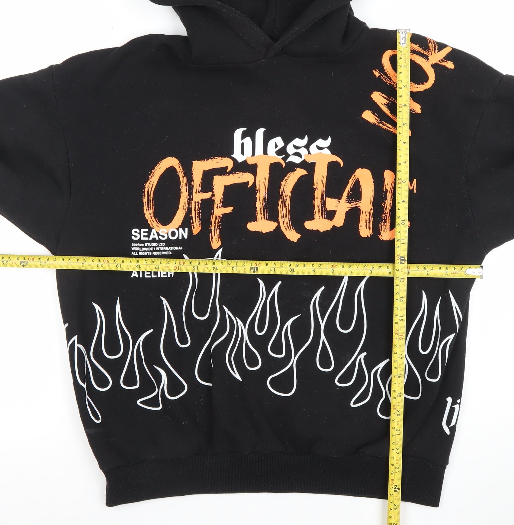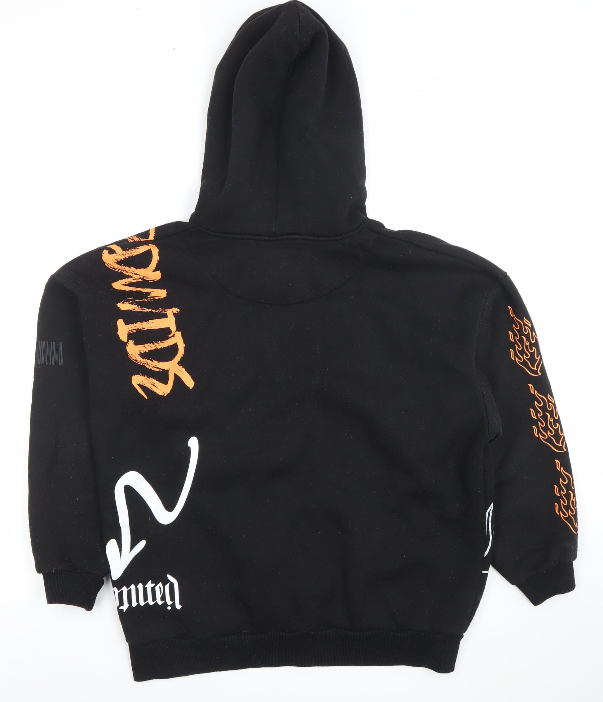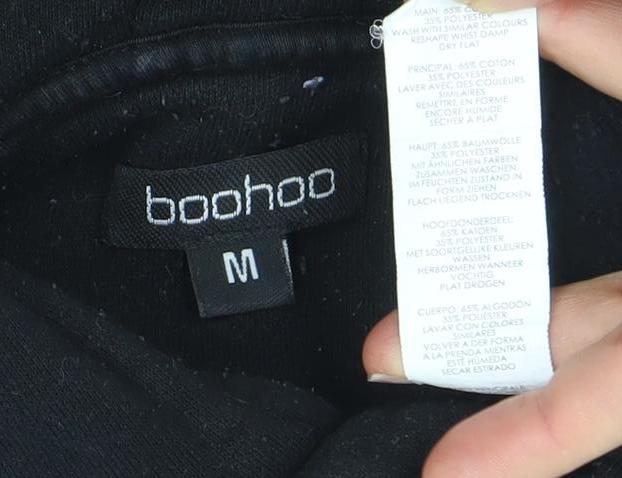 Boohoo Women's Black Graphic Flame Print Pullover Hoodie M