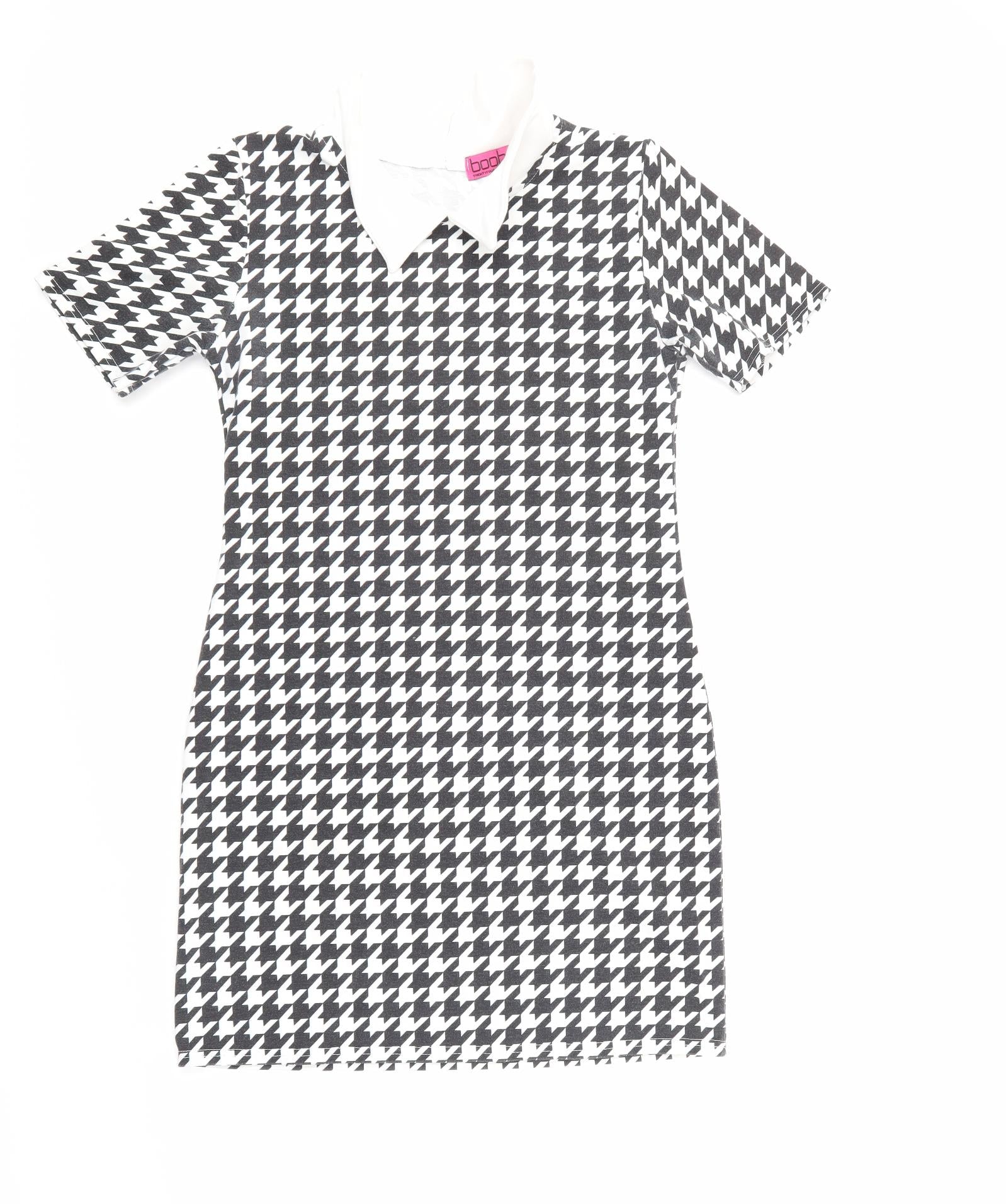 Boohoo Womens Black Houndstooth A-Line Size 10