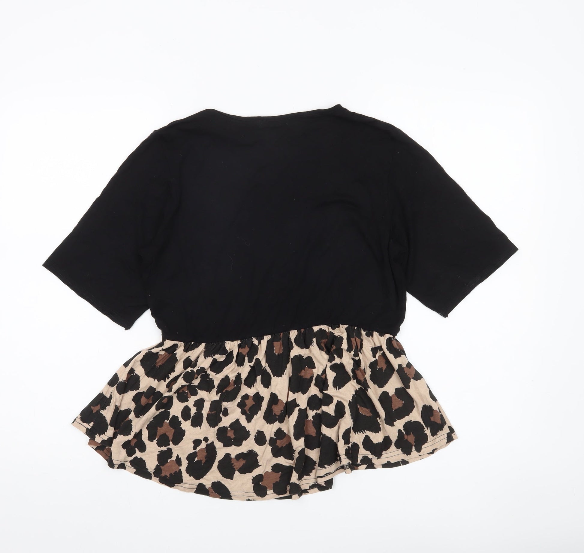Boohoo Womens Black Leopard Print Peplum Blouse UK 12 Regular