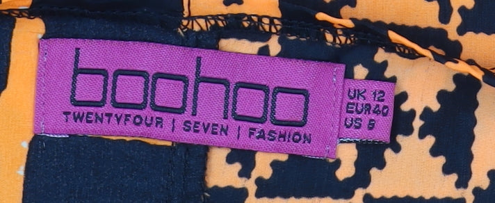 Boohoo Women's Black Orange One Shoulder Top, Size 12