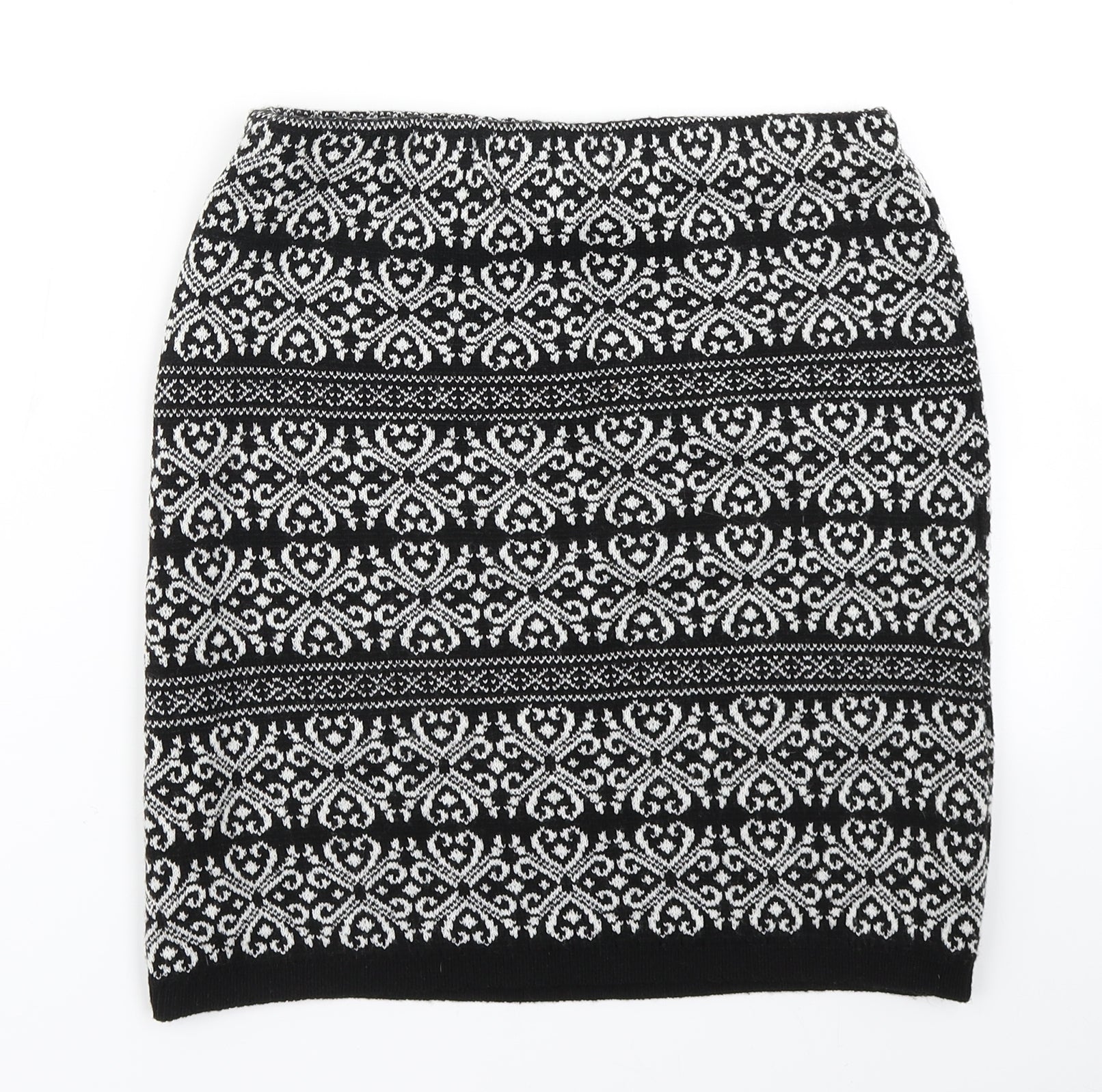 Boohoo Womens Black Paisley Knit A-Line Skirt Size S