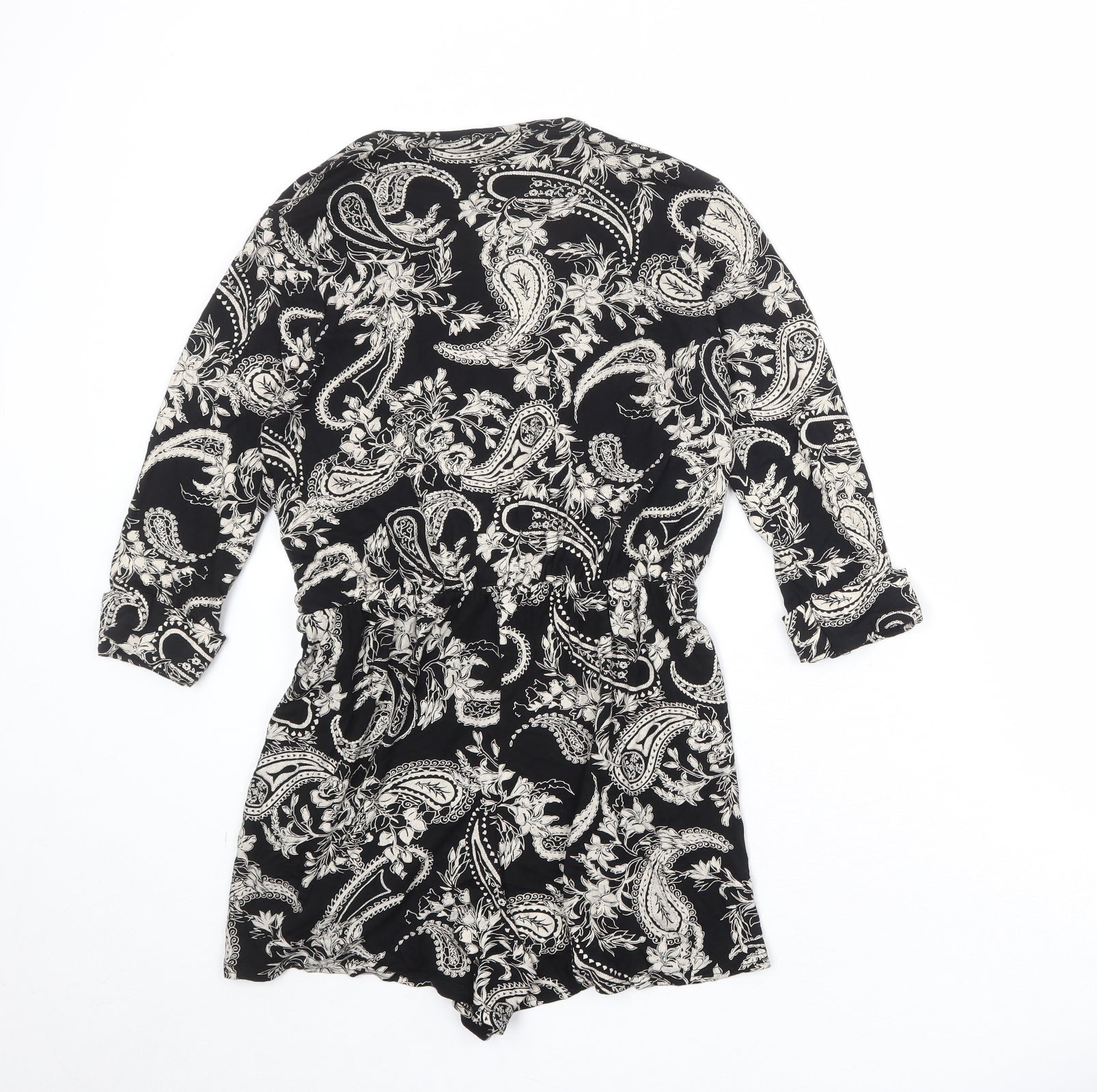 Boohoo Womens Black Paisley Viscose Playsuit One-Piece Size 10 Pullover