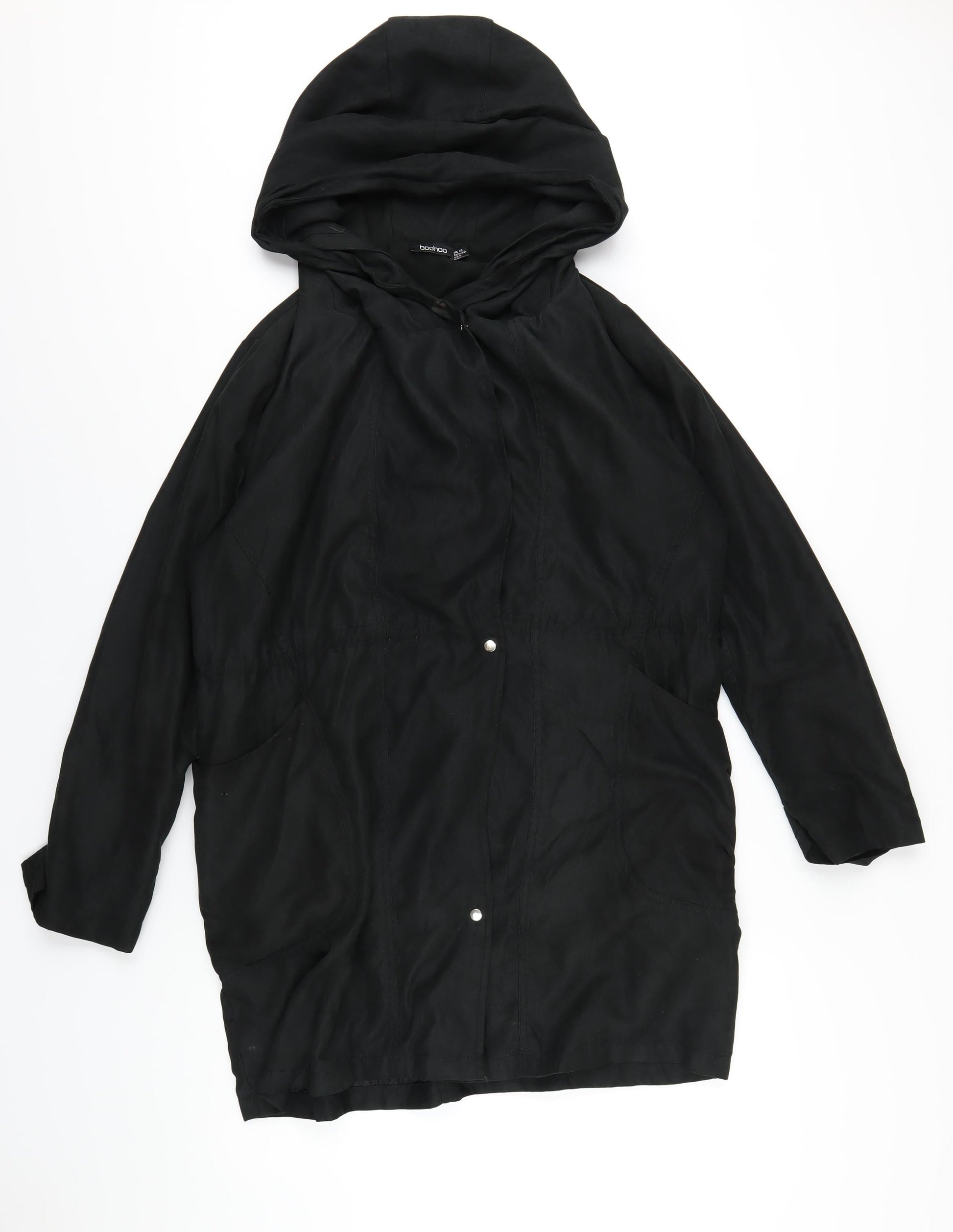 Boohoo Womens Black Parka Coat Size 12 Zip - Suede Effect