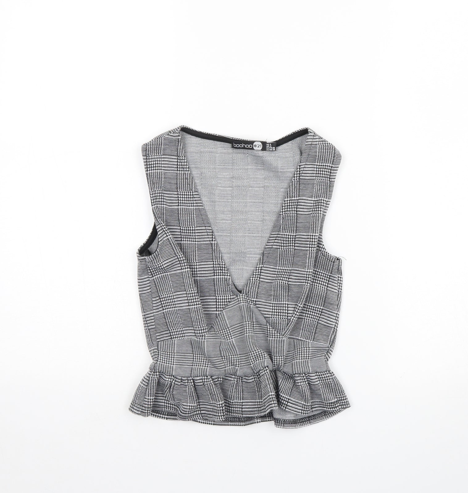 Boohoo Womens Black Plaid Basic Tank Size 8