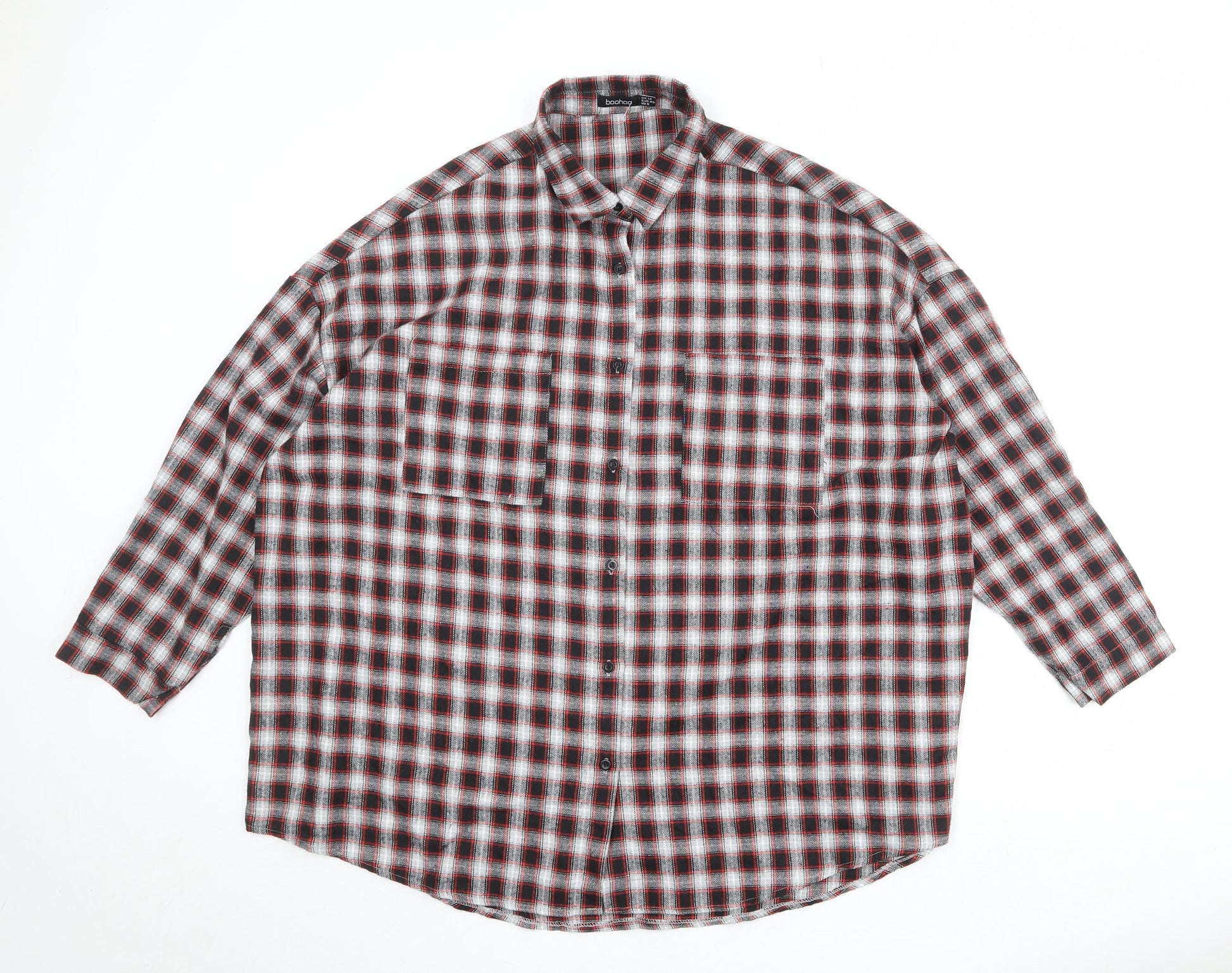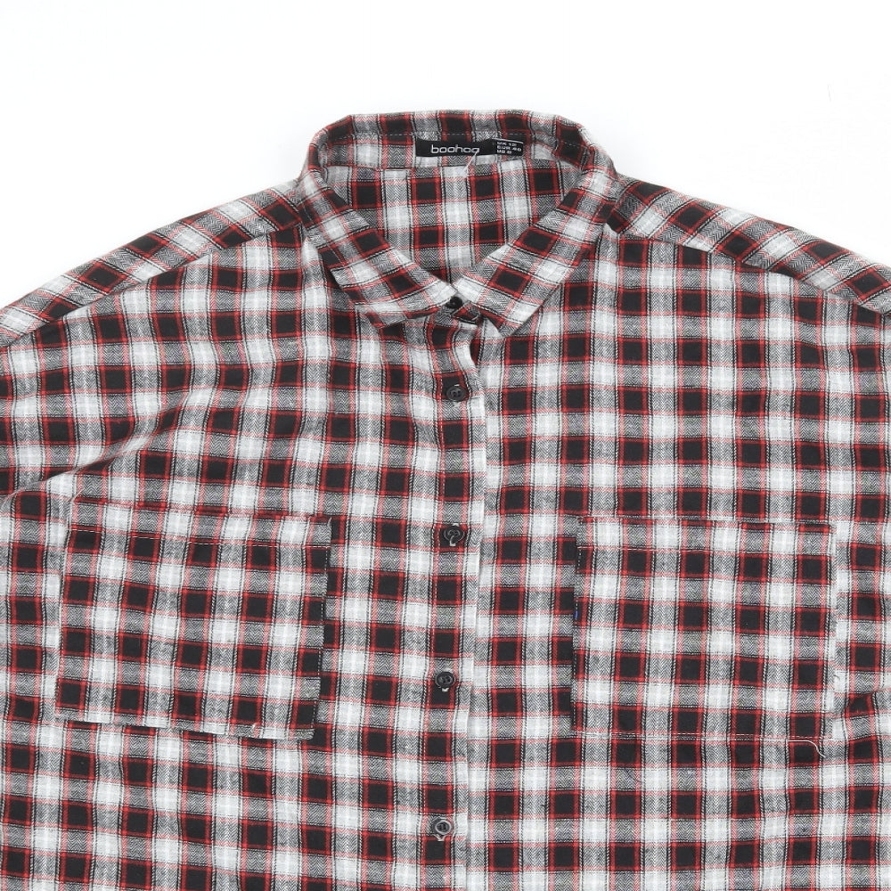Boohoo Womens Black Plaid Viscose Shirt Dress Size 12 Collared Button