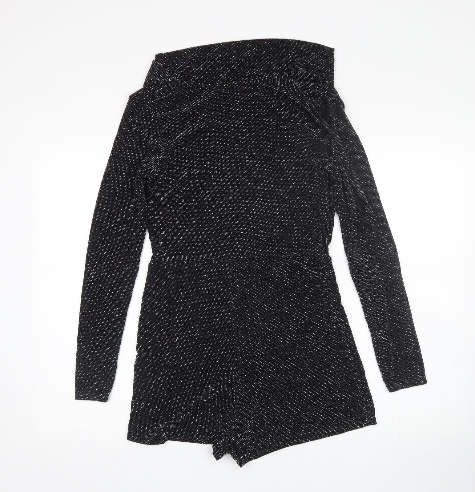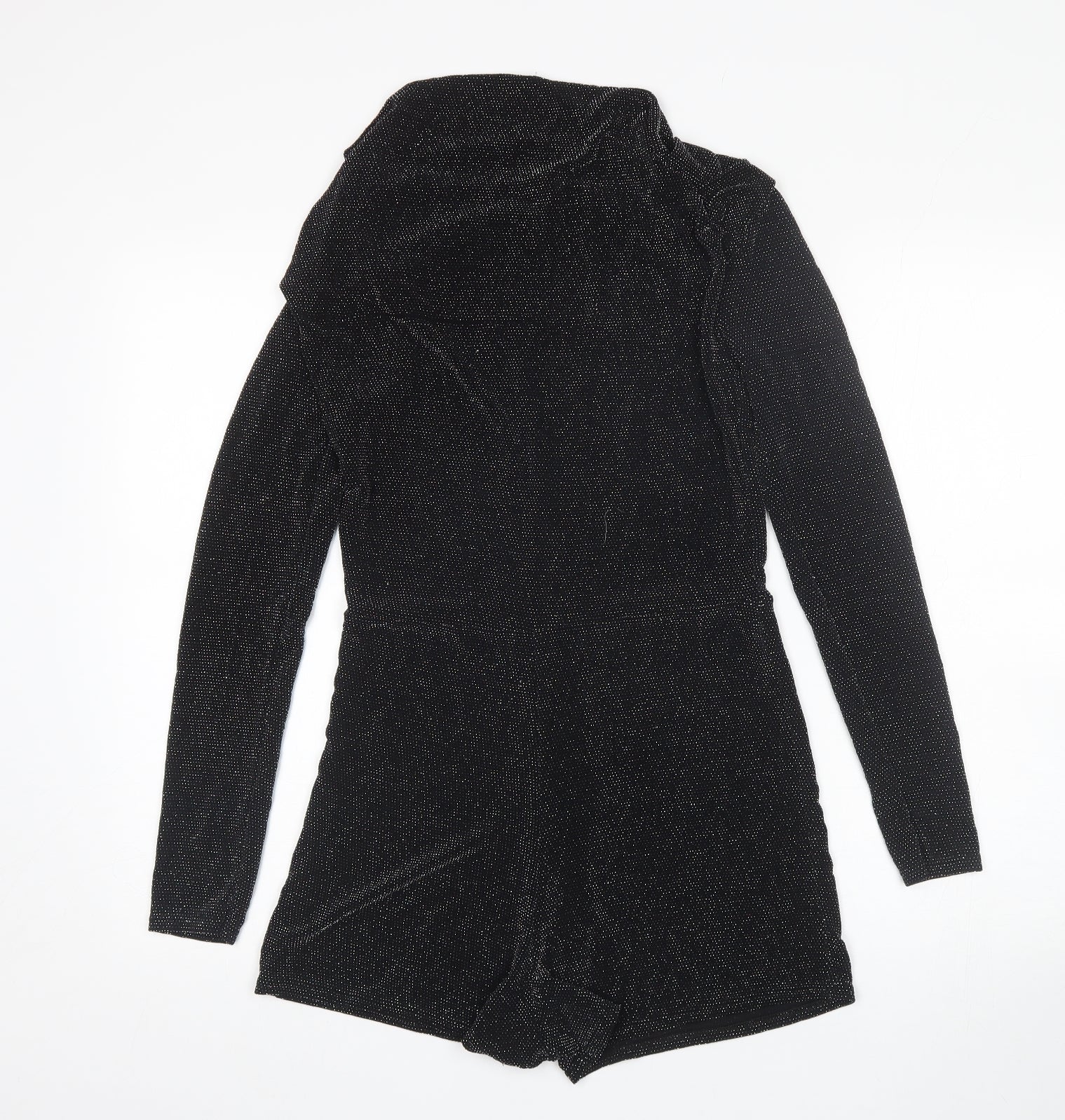 Boohoo Womens Black Polka Dot Playsuit One-Piece Size 10