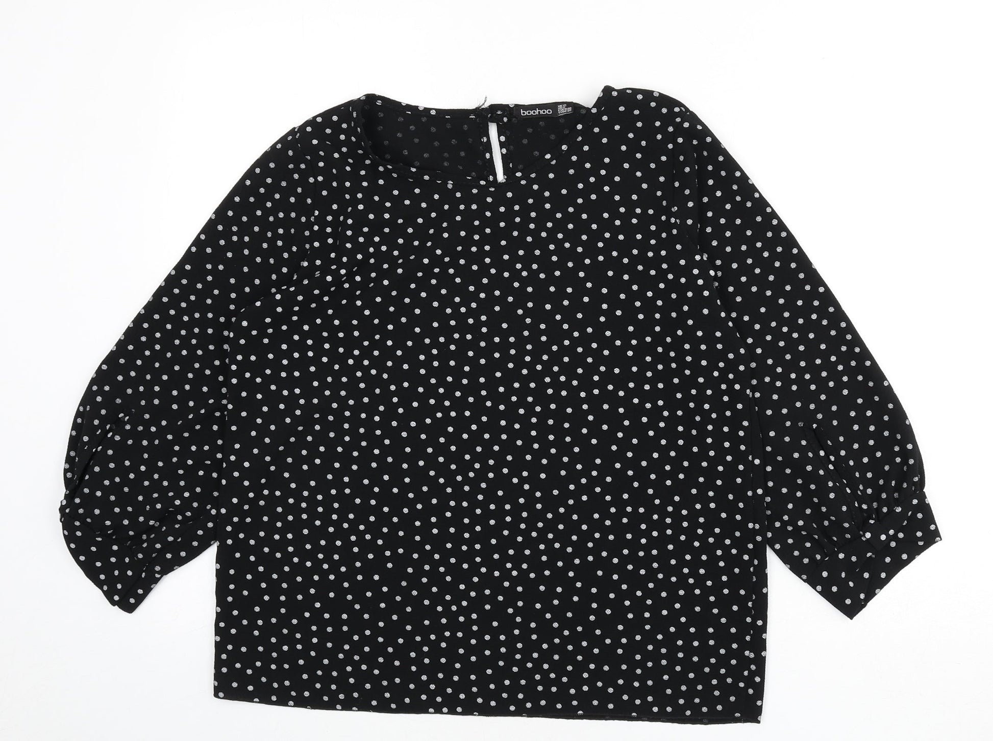 Boohoo Womens Black Polka Dot Polyester Basic Blouse Size 10 Round Neck