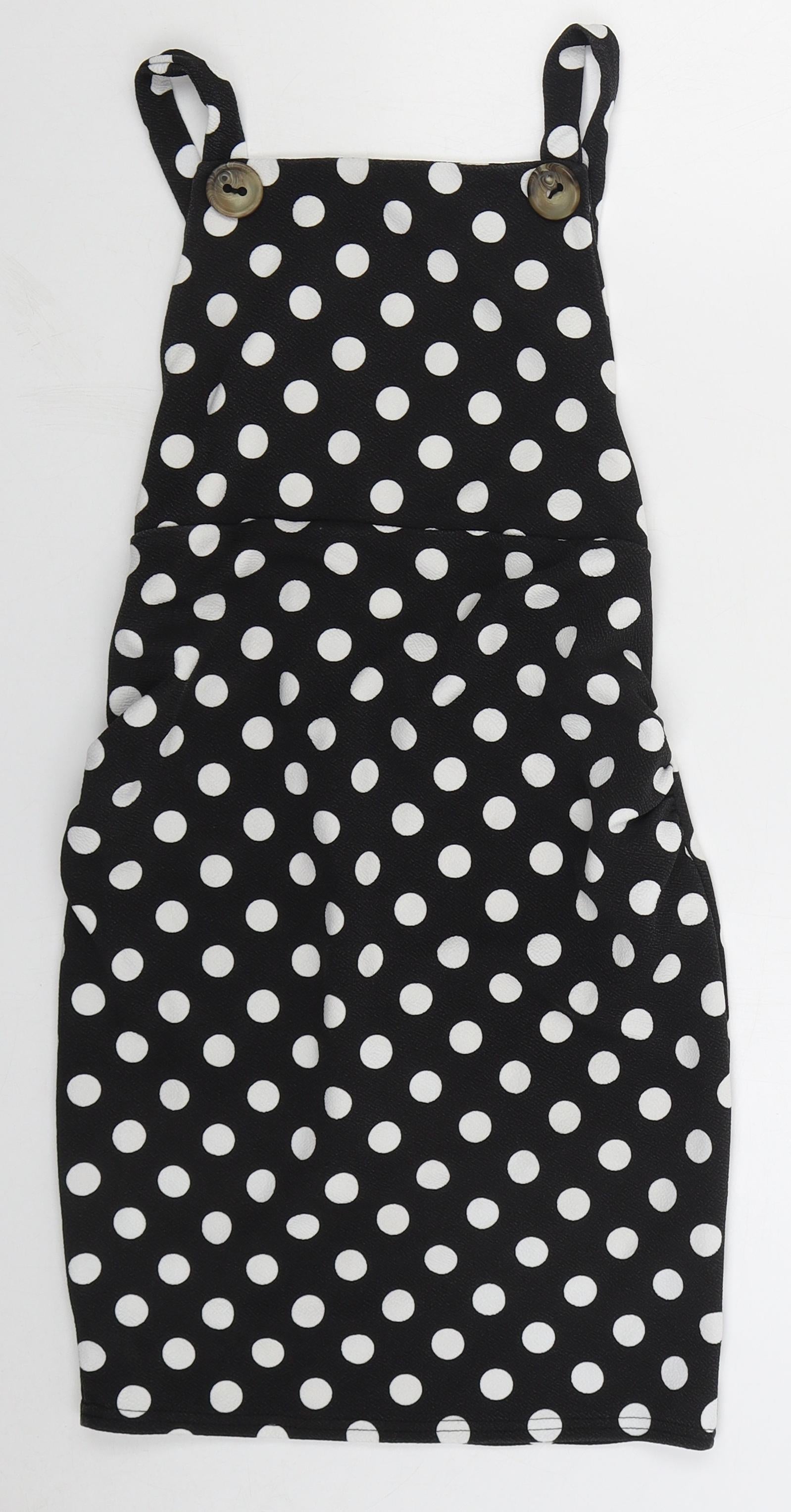Boohoo Womens Black Polka Dot Polyester Mini Size 8 Square Neck Pullover