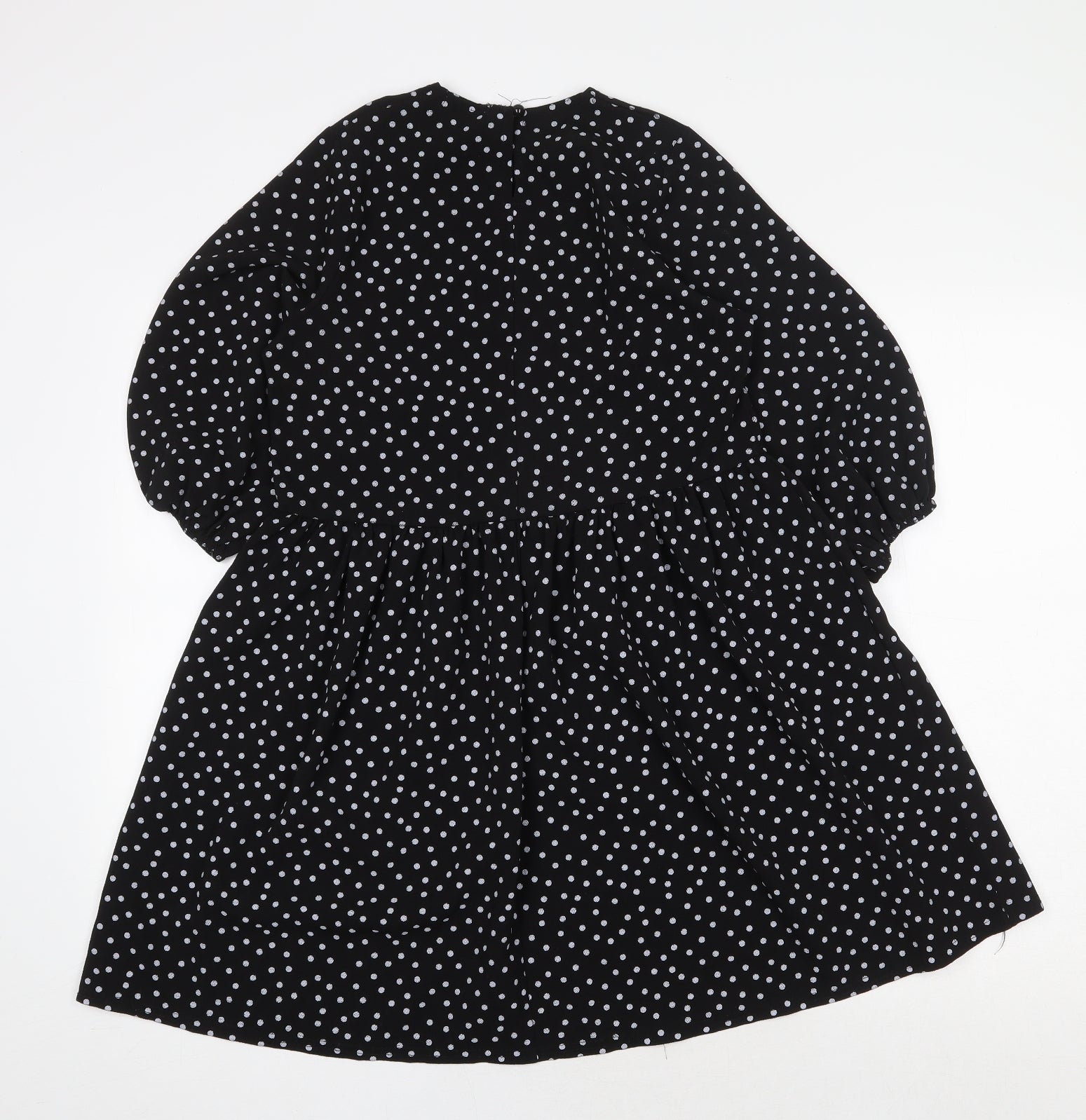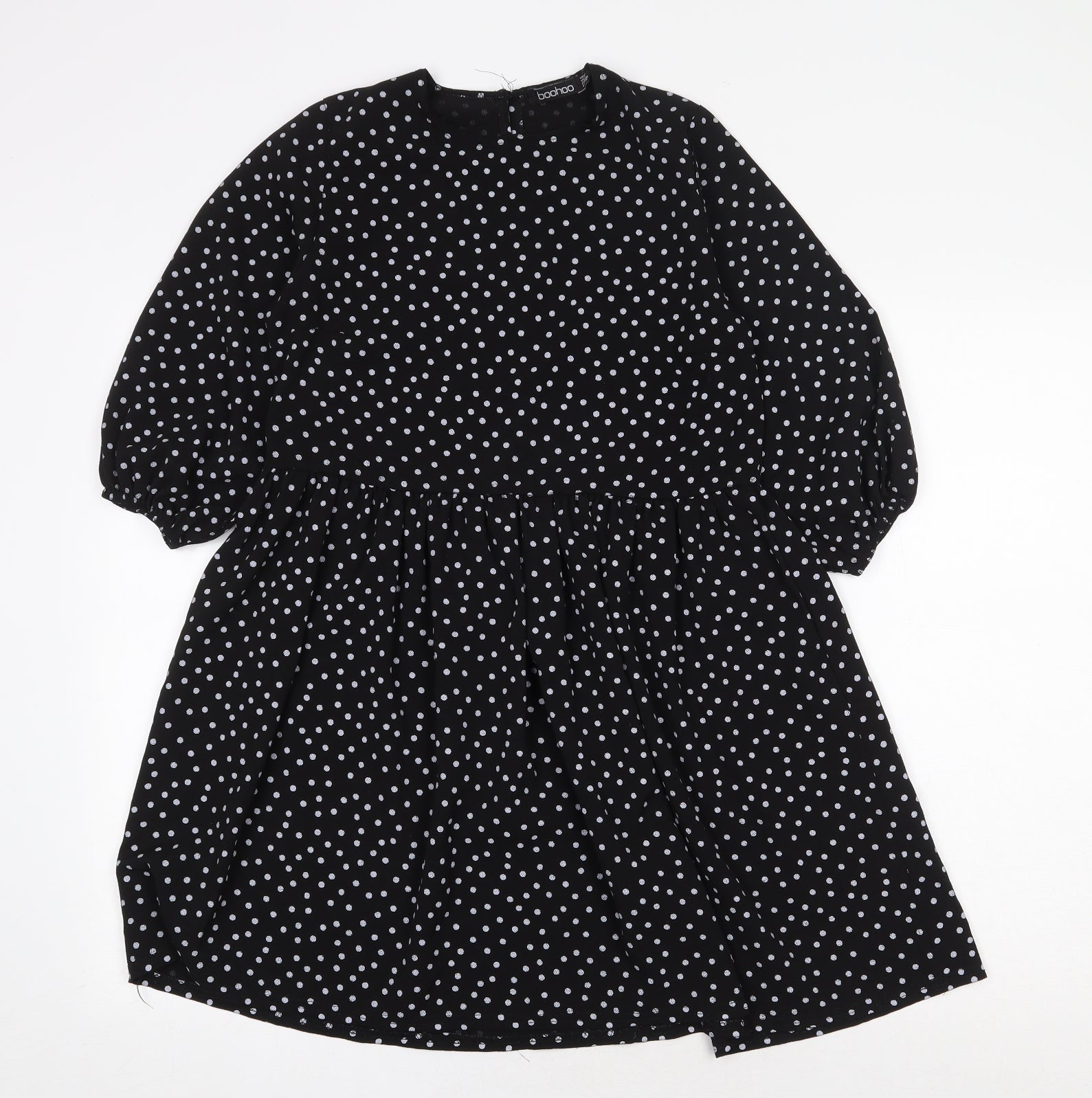 Boohoo Womens Black Polka Dot Polyester Trapeze & Swing Size 6 Round Neck Button