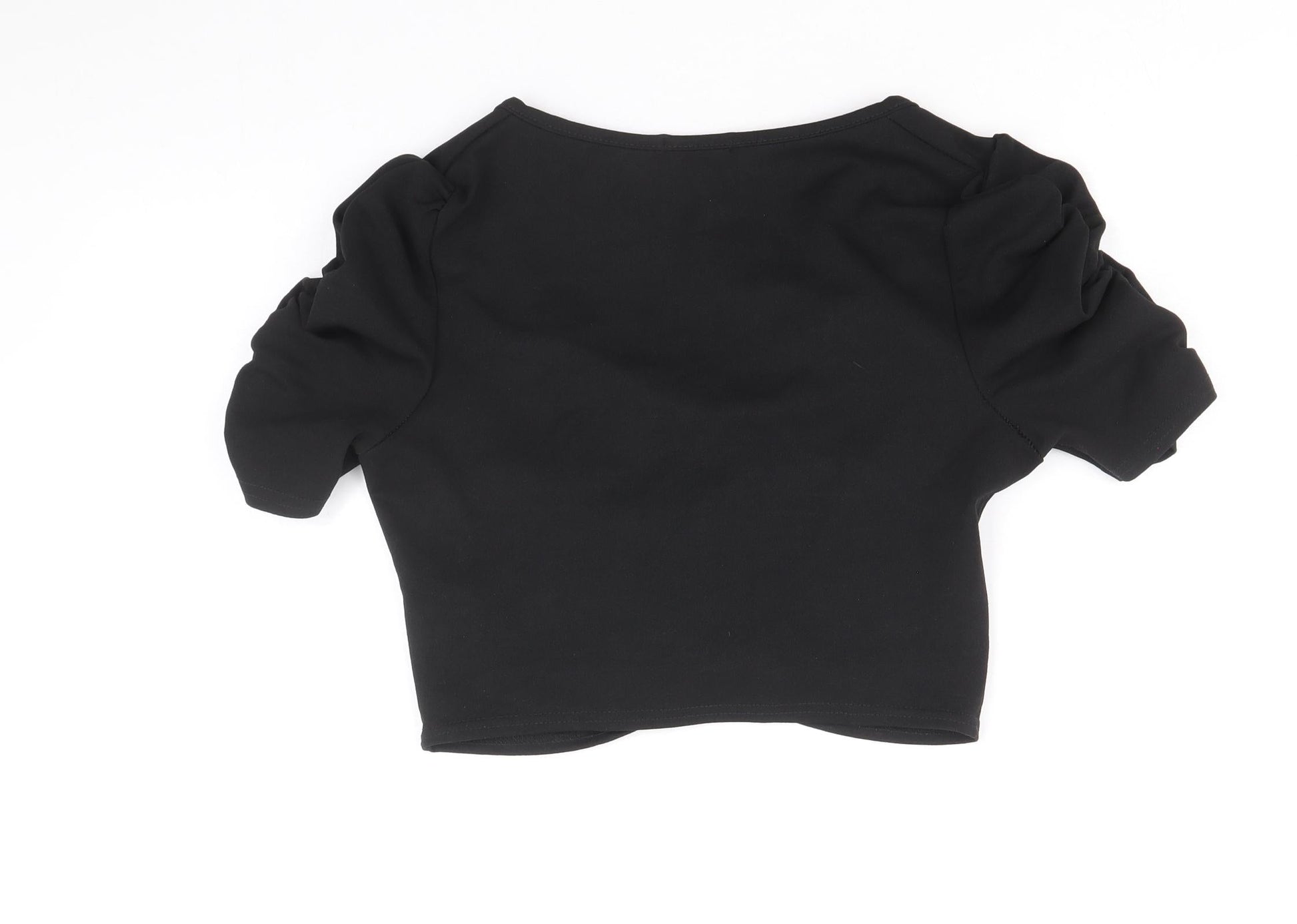 Boohoo Womens Black Polyacrylate Fibre Cropped T-Shirt Size 12 Scoop Neck - Front Ruched