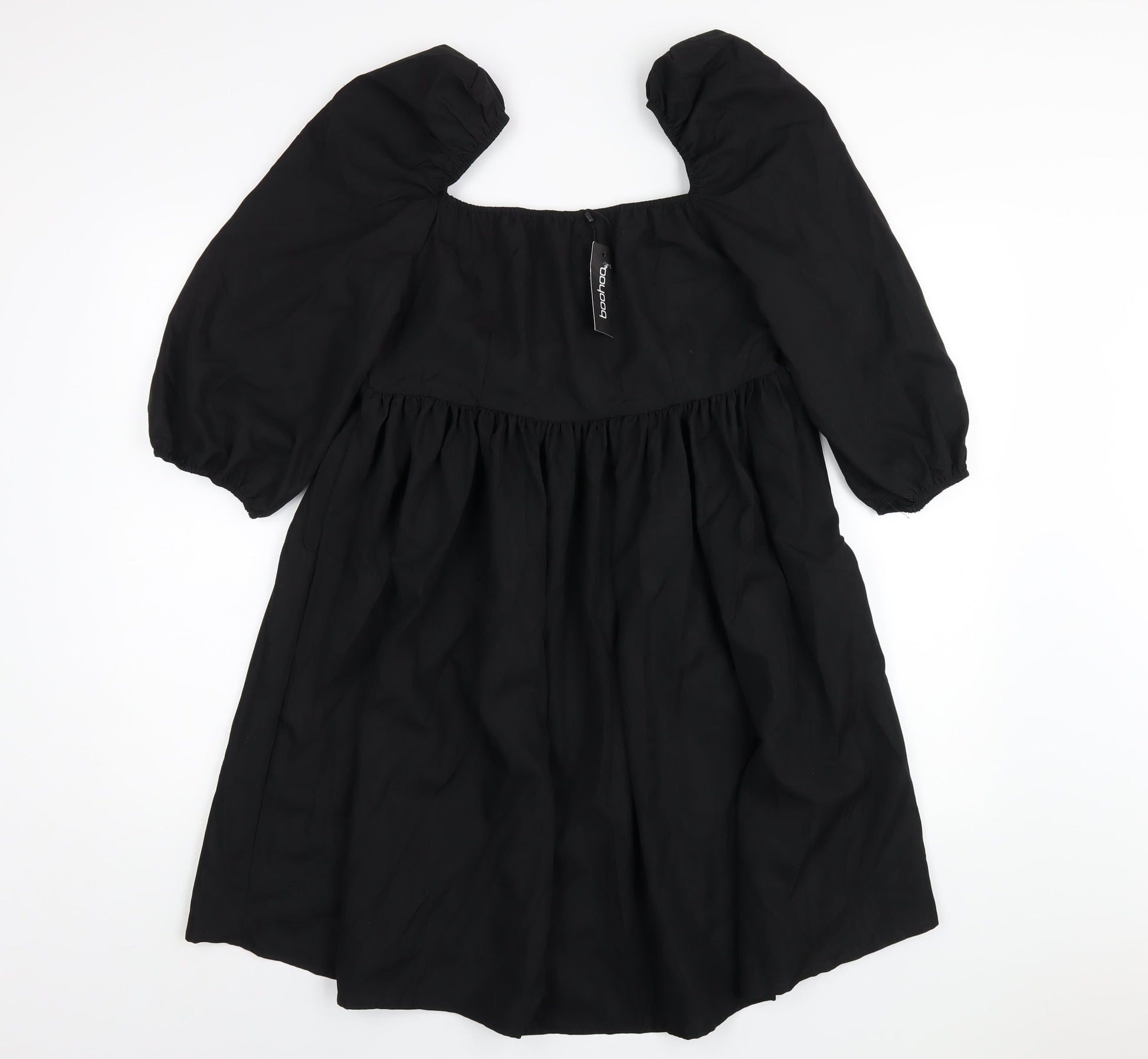 Boohoo Womens Black Polyester A-Line Size 12 Scoop Neck Zip