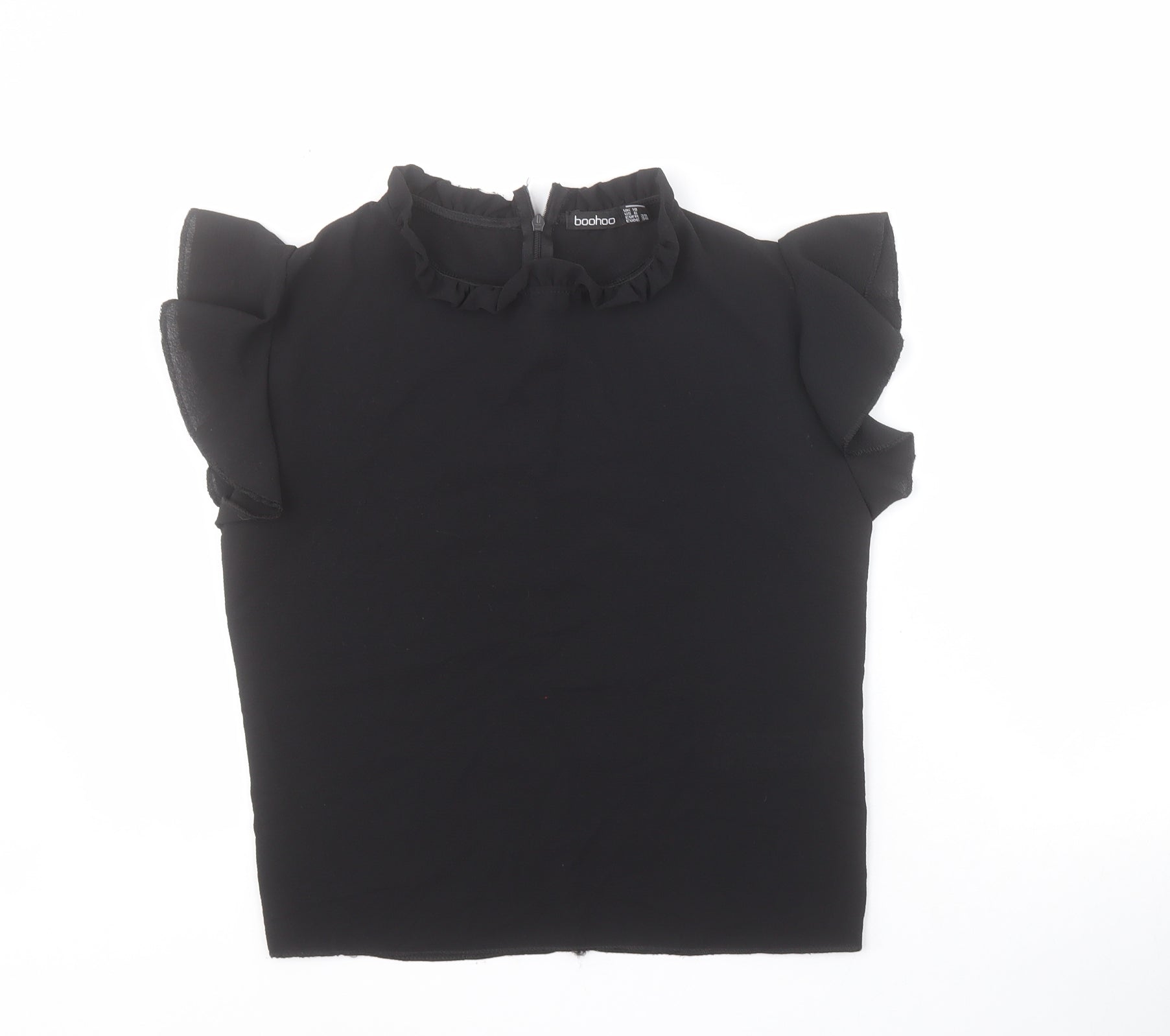 Boohoo Womens Black Polyester Basic Blouse Size 10 Round Neck