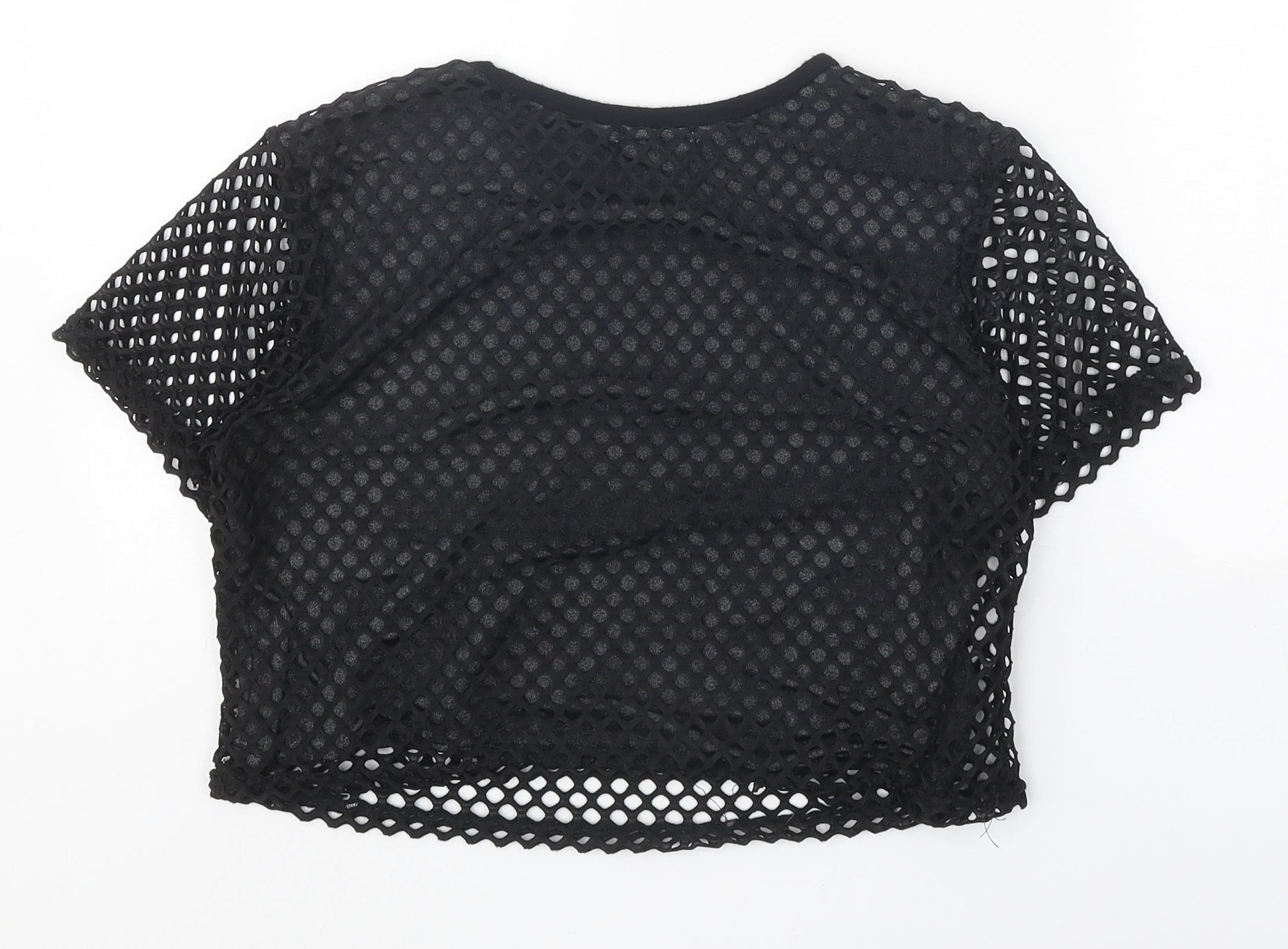 Boohoo Womens Black Polyester Basic Blouse Size 12 Round Neck