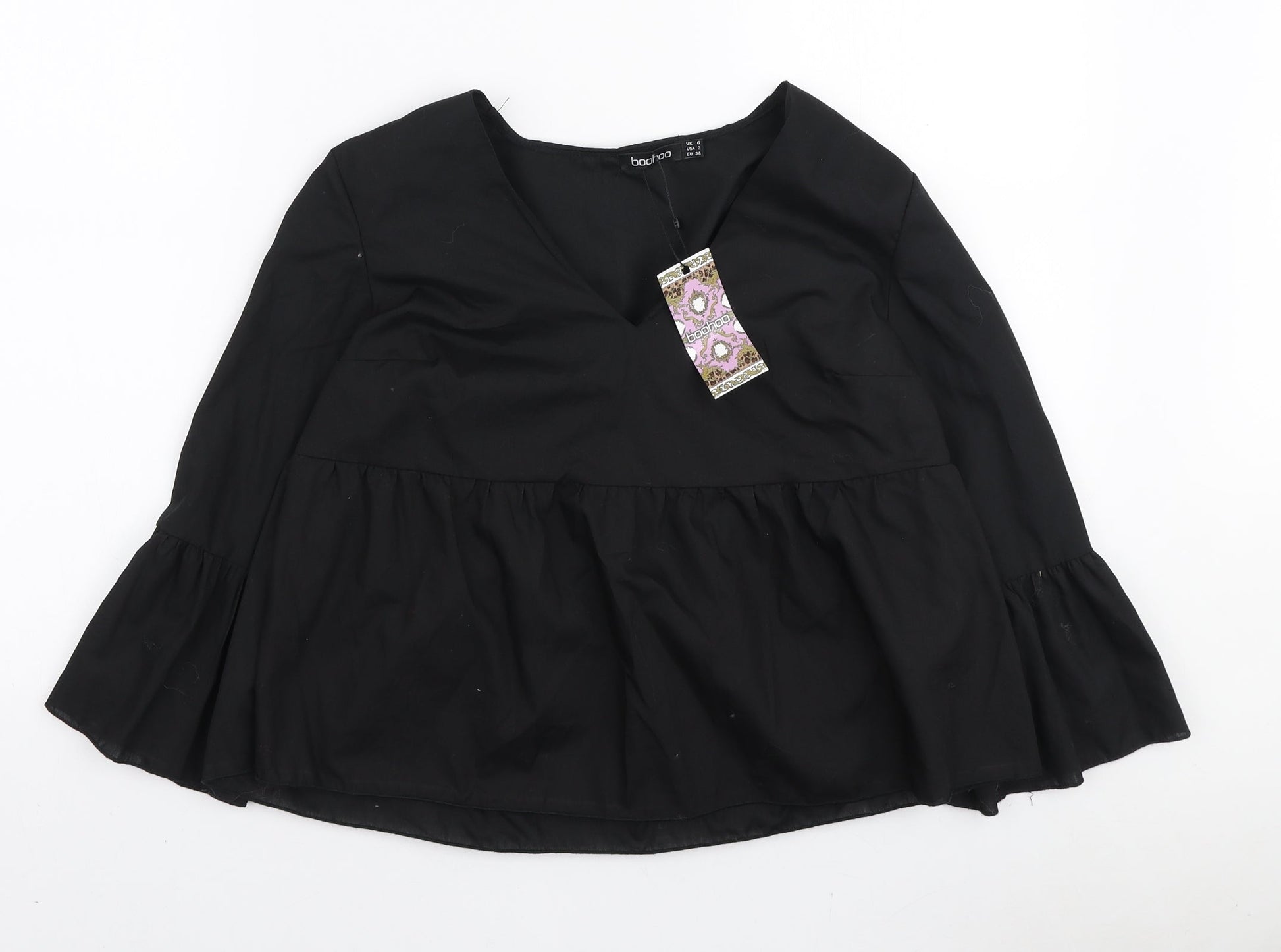 Boohoo Womens Black Polyester Basic Blouse Size 6 V-Neck