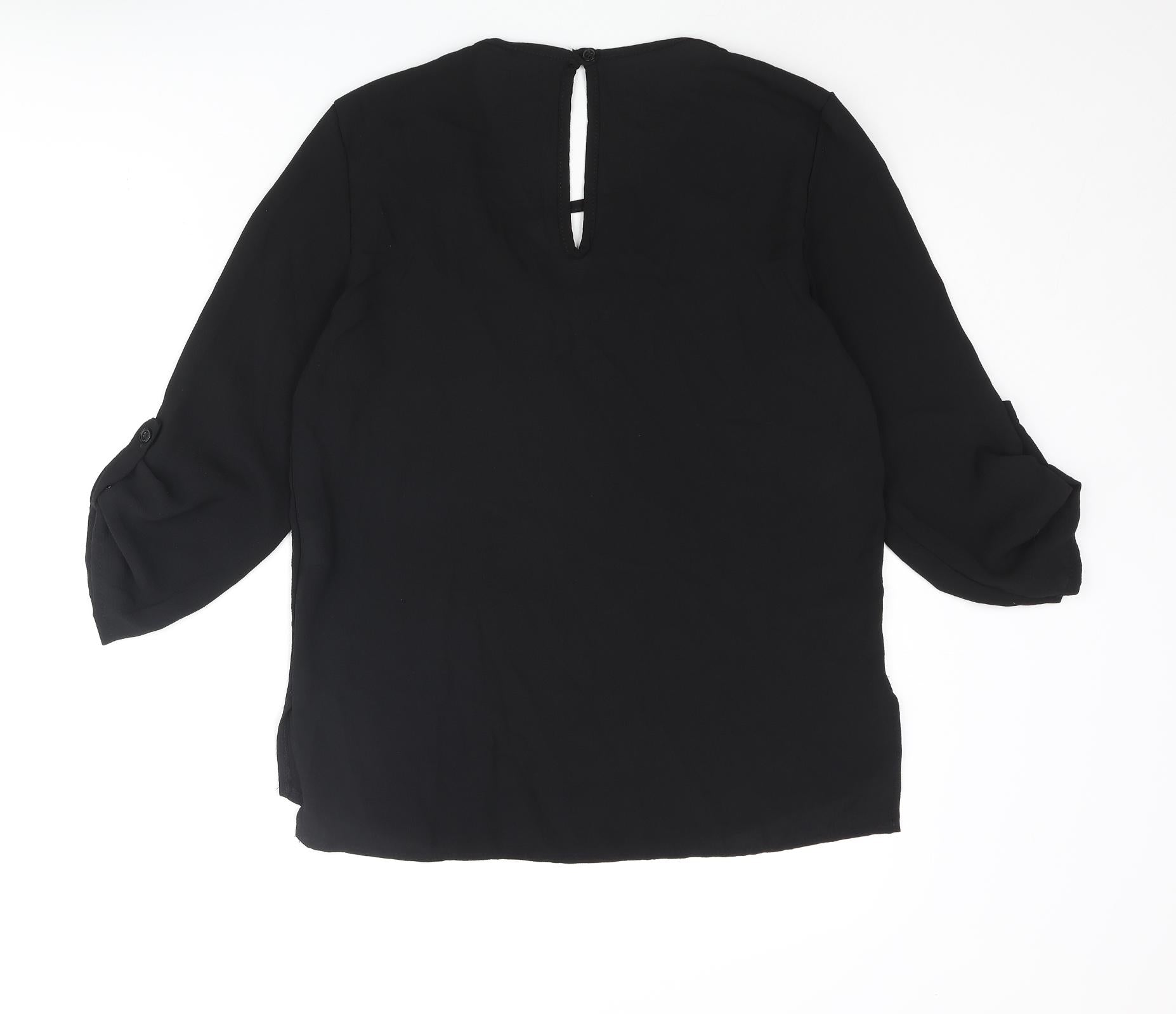 Boohoo Womens Black Polyester Basic Blouse Size 8 Round Neck - Keyhole Neck