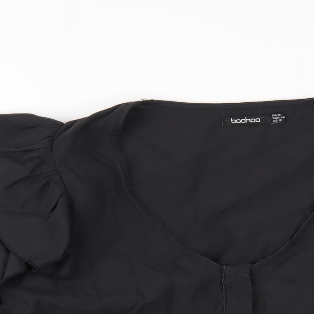 Boohoo Womens Black Polyester Basic T-Shirt Size 16 Round Neck
